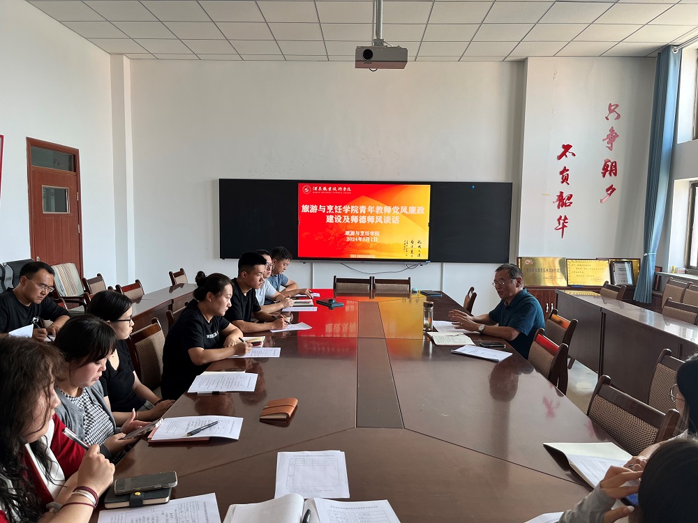 院系动态 > 正文旅游与烹饪学院于2024年8月30日在行知楼710会议室隆重召开了全体青年教师党风廉政建设及师德师风谈话活动。此次活动旨在进一步加强青年教师队伍的思想政治建设,提升师德师风水平,确保学院教育教学工作健康、有序、高质量发展。