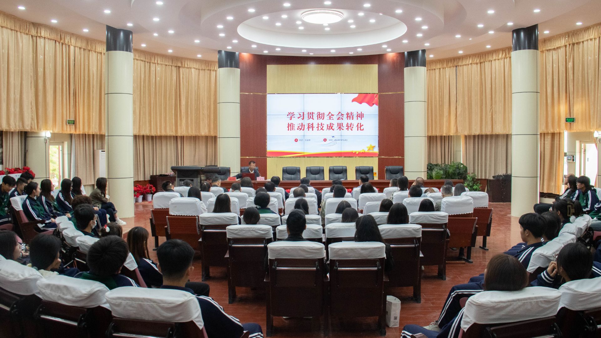 为深入学习贯彻党的二十届三中全会精神,提高师生政治理论水平,切实将理论和实践相结合,9月14日下午,党委委员、副校长王金明在学术报告厅讲授“学习贯彻全会精神,推动科技成果转化”为主题的专题党课。生物工程学院全体教师、学生入党积极分子代表共100余人参加。
