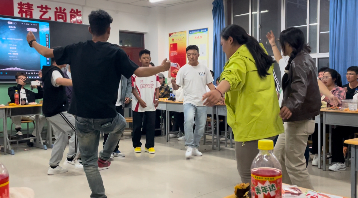 活动伊始,各班开展自我介绍、抢凳子、趣味抽奖等创意游戏,帮助同学们打破陌生感,建立友谊和信任。随后,同学们积极展示自己的才艺,带来了歌曲演唱、舞蹈等丰富多彩的表演。藏族学生跳起锅庄舞,举手投足满是民族风情,同学们以歌舞的形式表达对中秋佳节的深情寄托,现场洋溢着青春的活力。