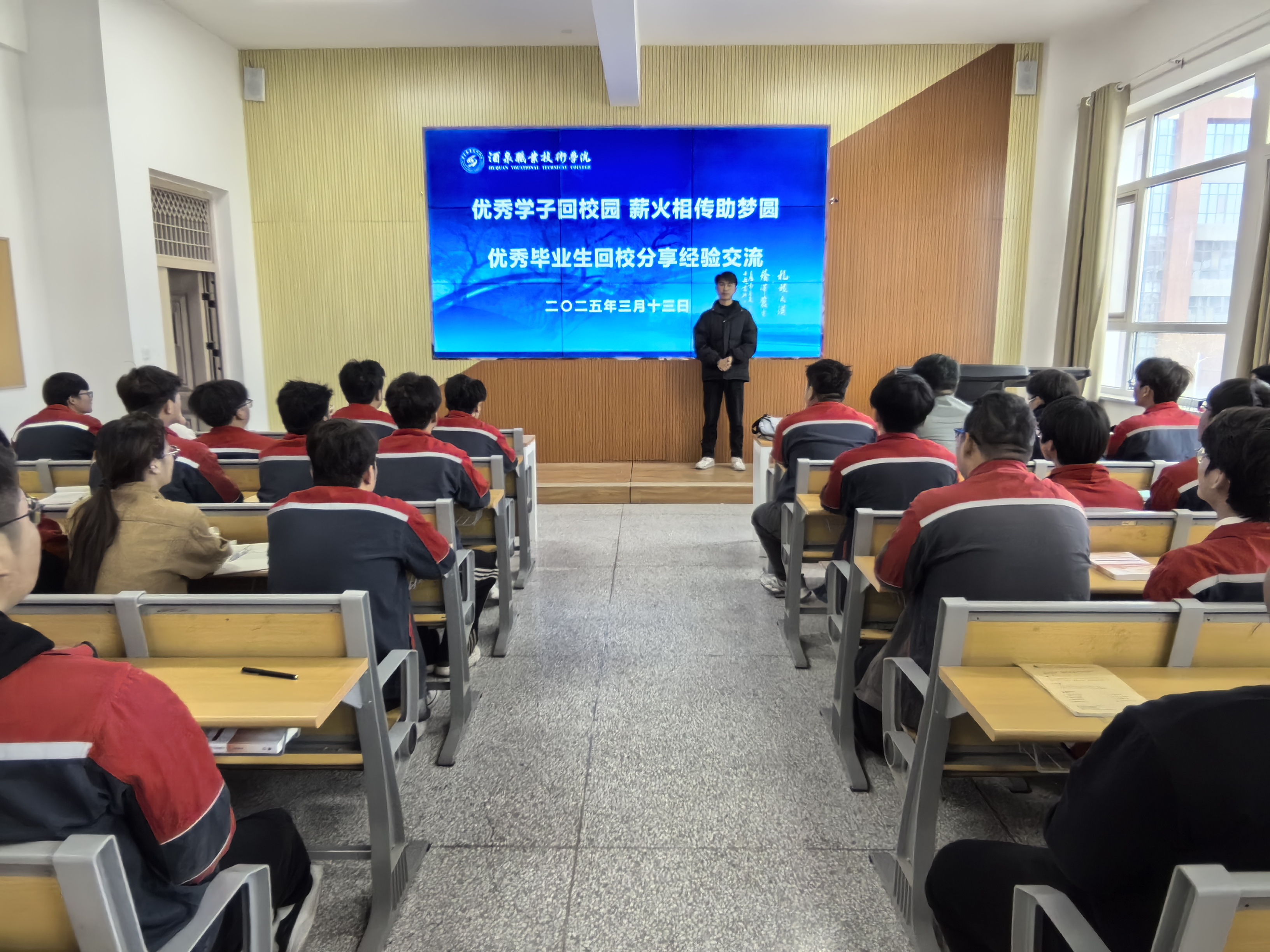 为充分发挥优秀毕业生的榜样引领作用,帮助在校学生明确学习目标,做好职业规划,迎接岗位实习。3月13日下午,机电工程学院在格物楼208教室开展了“优秀学子回校园 薪火相传助梦圆”优秀毕业生经验分享会。本次分享会邀请到了24届智能焊接技术专业优秀毕业生刘开心同学回校分享经验。