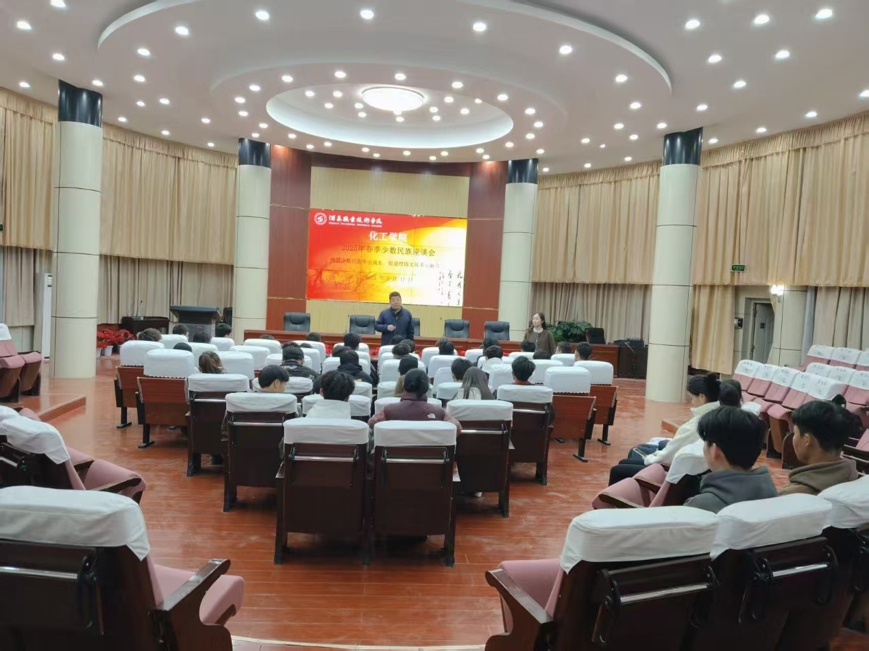 3月17日下午,化工学院在逸夫楼报告厅隆重召开了少数民族学生座谈会。会议由化工学院副院长徐军新主持,学院团委副书记刘康丽以及化工学院少数民族学生参会。