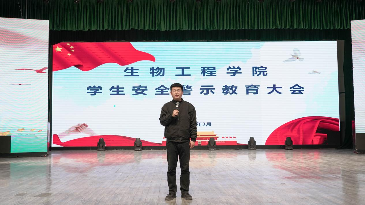 为进一步增强学生的安全意识,筑牢校园安全防线,帮助同学们树立“安全第一”的理念,生物工程学院于3月21日在胡杨活动中心召开2025年春季学生安全警示教育大会,会议由团委书记张超主讲,全体2023、2024级在校生参加。