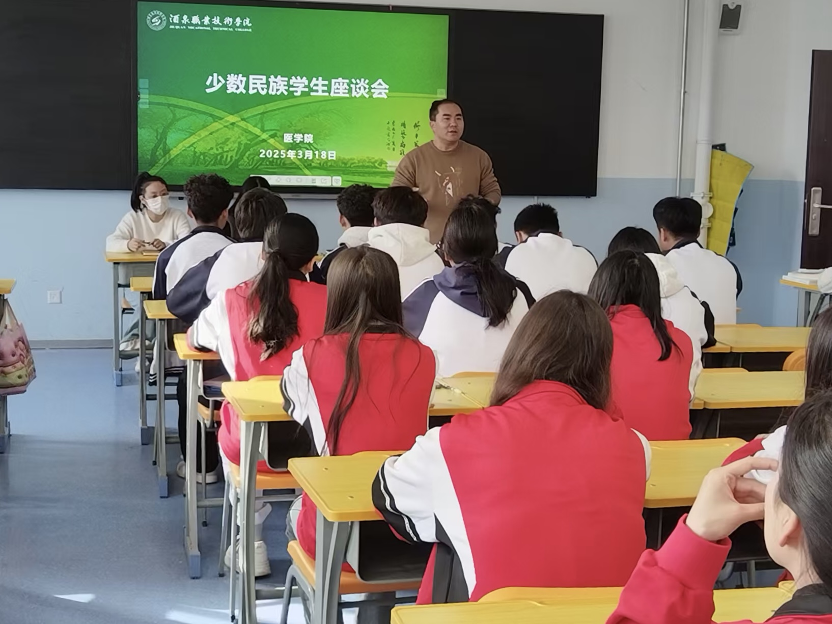 2025年3月18日,医学院在弘远楼开展医学院少数民族同学座谈活动。院领导、辅导员和教师代表老师参会,与民族学生共同交流学习、生活,帮助民族学生树立明确学习生活目标,助力健康成长