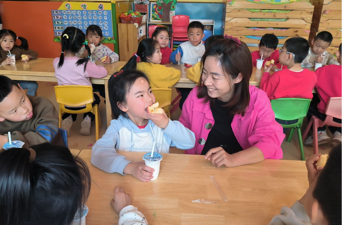 全程跟岗观察,感悟教育细节。在跟岗实践中,石金蕊老师深度参与幼儿园的日常教学与管理工作,体验岗位工作,了解幼儿的心理特征和学习特点。从清晨孩子们踏入幼儿园时的声声问候,到教师们精心准备的趣味课堂,从用餐到午睡,每一个时段每一个环节,认真观察学习过程、生活照料中的教育细节,从培养幼儿良好的生活习惯,到安抚情绪,每一步都充满智慧。石老师深知,这些稚嫩的心灵需要的不仅仅是知识的灌溉,更需要情感的滋养与引导。她观察到,教师在课堂上的每一个微笑和呵护、每一句鼓励和安慰,都在无形中塑造着孩子们的自信与勇气。而那些看似琐碎的日常细节“如何引导孩子们排队洗手、如何在他们争执时耐心调解、如何在午睡前轻声讲述一个温暖的故事”都是教育的重要组成部分。
