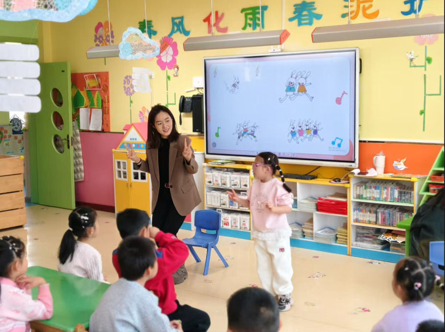 深入教学实践,探索教育路径。在奥尔夫的音乐特色教学实践中,石金蕊老师引导孩子们去倾听,辨别,想象来自生活和自然界的不同的声音,把”唱歌、念白、律动、舞蹈、表演”等艺术元素都融入课堂,带领孩子们进入丰富的音乐世界,同时细致入微地观察幼儿在音乐学习过程中的行为表现、思维反应和情感投入,剖析幼儿音乐学习特征,以激发幼儿内心对音乐的热爱,全面挖掘他们对音乐的感知与理解,并将这些实践洞察与高职幼儿音乐教育的课程体系、教学方法以及人才培养目标相对照,反思现有教育模式、教学方法与课程内容,探寻更贴合行业实际需求与学生发展的教学路径。