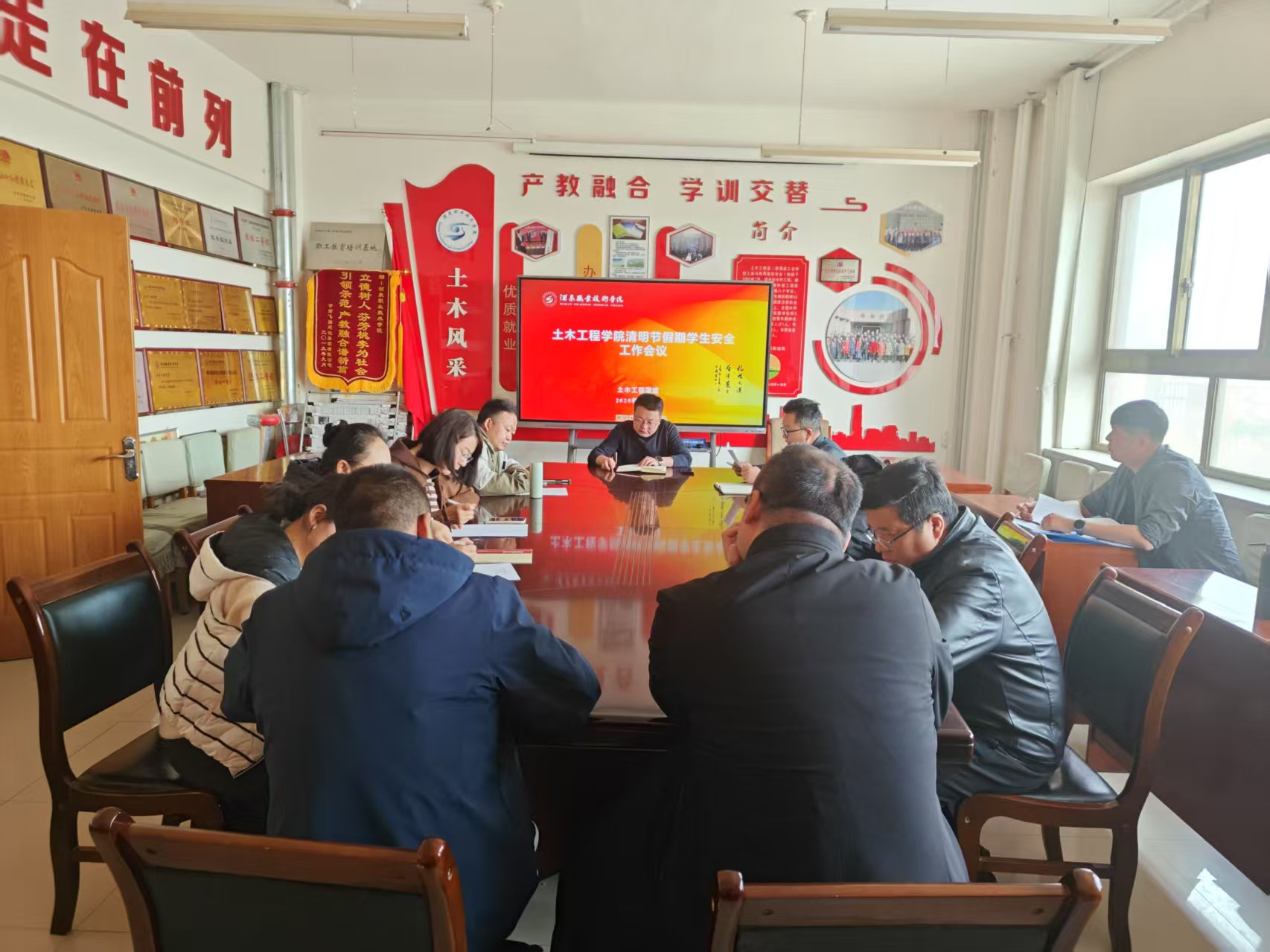为切实做好学生安全教育管理工作,确保学生度过一个平安、文明的假期。4月3日,土木工程学院组织召开关于清明节放假期间学生安全教育管理工作会议,涵盖班主任工作会议、团学干部工作会议以及主题班会。