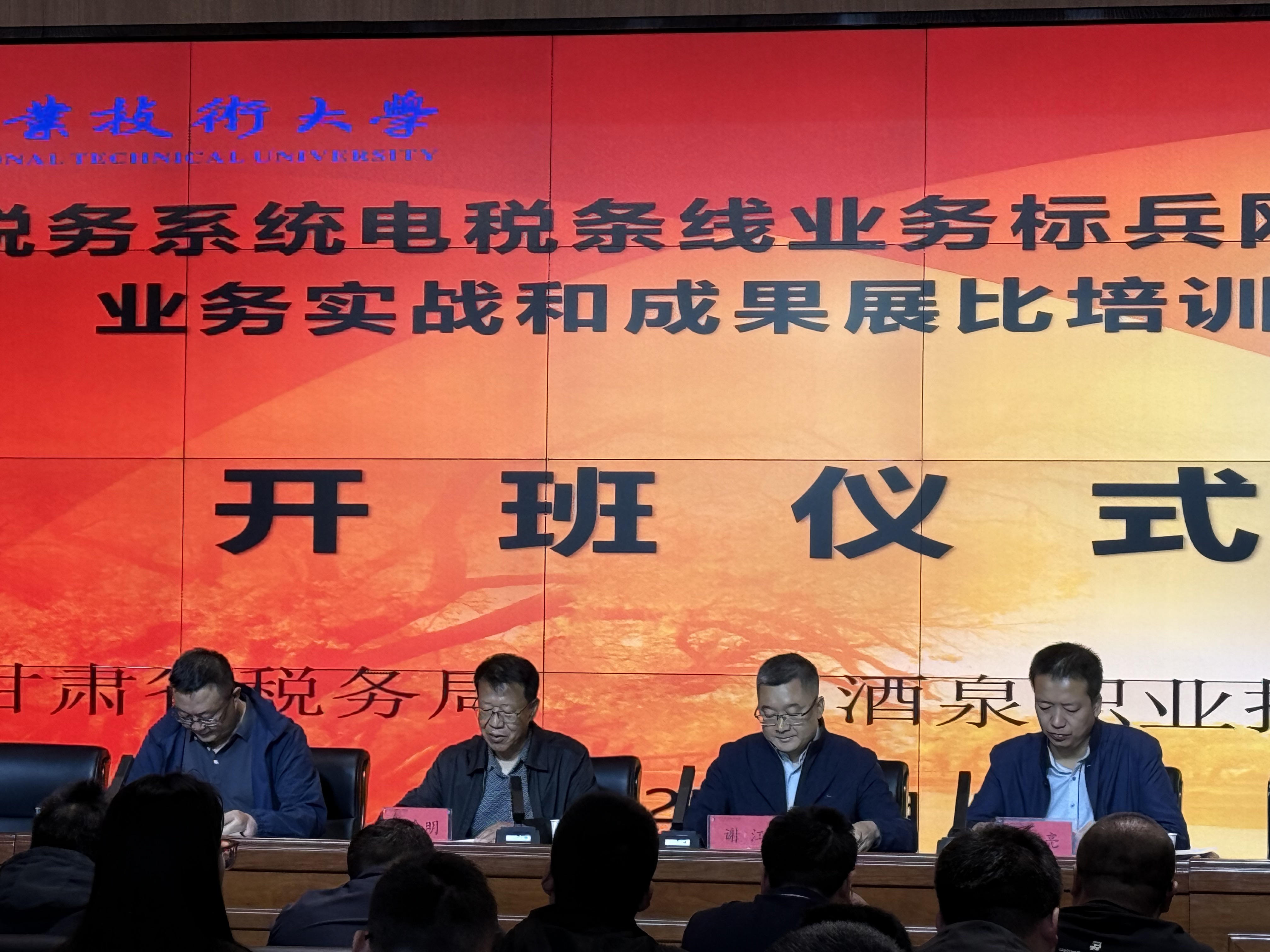 2025年5月7日,甘肃省税务系统电税条线业务标兵网络安全攻防业务实战和成果展比培训班开班仪式在弘毅楼C座102顺利开班。学校党委委员、副校长王金明、甘肃省税务局信息中心副主任谢江出席开班仪式。电子与信息工程学院、经济管理学院分管领导以及35名参训学员参加了开班仪式。