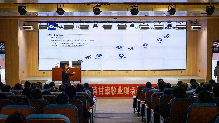 招聘会上,嘉立荷(甘肃)牧业有限公司人力资源部经理郝晶通过企业宣传片,全面介绍了公司的发展历程与核心业务。作为西北地区现代化牧业标杆企业,公司以“科技兴牧、绿色循环”为战略核心,构建“生态养殖+智能加工”的全产业链模式,依托物联网技术实现牧场数字化管理,并通过大数据优化养殖效率。她强调,公司正加速推进智慧牧场建设,亟需兼具专业素养和创新能力的青年人才加入。