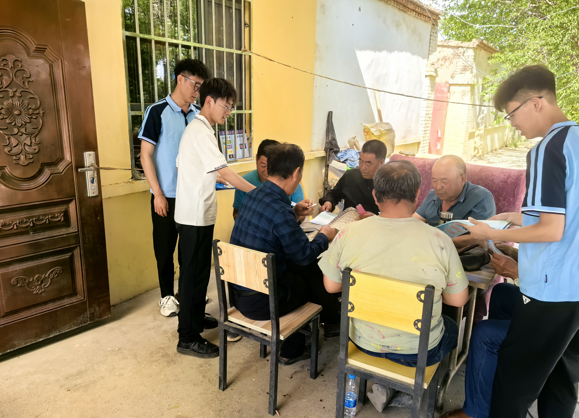 抵达丁家闸村后,学院及时了解当地用水现状及村民需求。随后,马宏副院长与薛凌荣主任带领学生团队走访农户,向村民发放《节水护水宣传手册》,宣传家庭节水小技巧、水污染防治常识及水资源保护法律法规,师生们与村民亲切交流,耐心解答疑问,通过现场演示,指导村民如何检测家庭用水设备漏水、合理利用水资源。