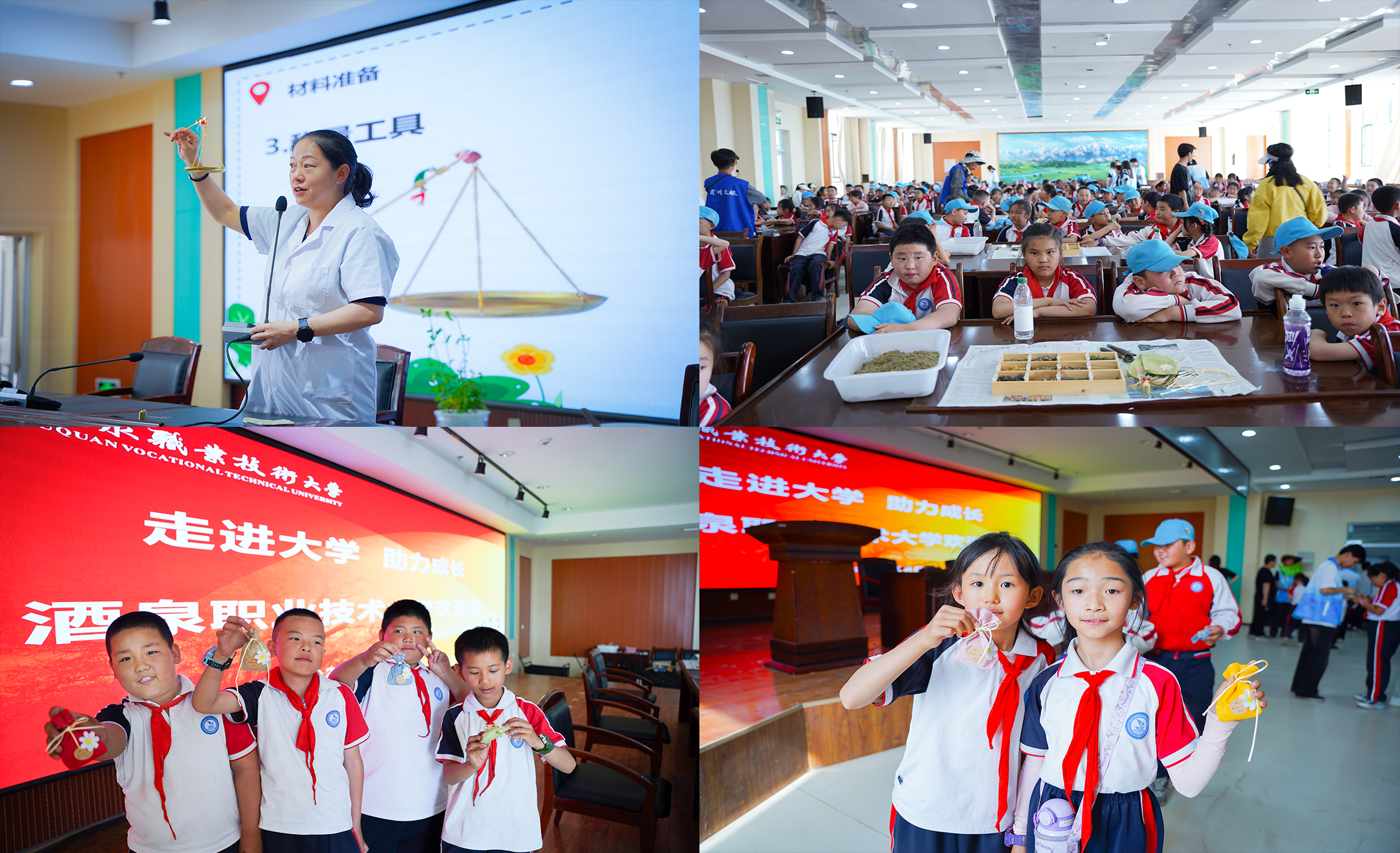 为深入贯彻落实2025年职业教育活动周精神,扎实推进职普融通工作,5月16日,酒泉职业技术大学迎来了一批充满朝气的小客人——酒泉师范附属小学三年级241名学生,开启了一场别开生面的职业启蒙研学之旅。此次活动聚焦爱国主义教育与中医文化传承,充分发挥高校资源优势,为小学生们搭建起体验职业魅力、启蒙专业认知的实践平台。