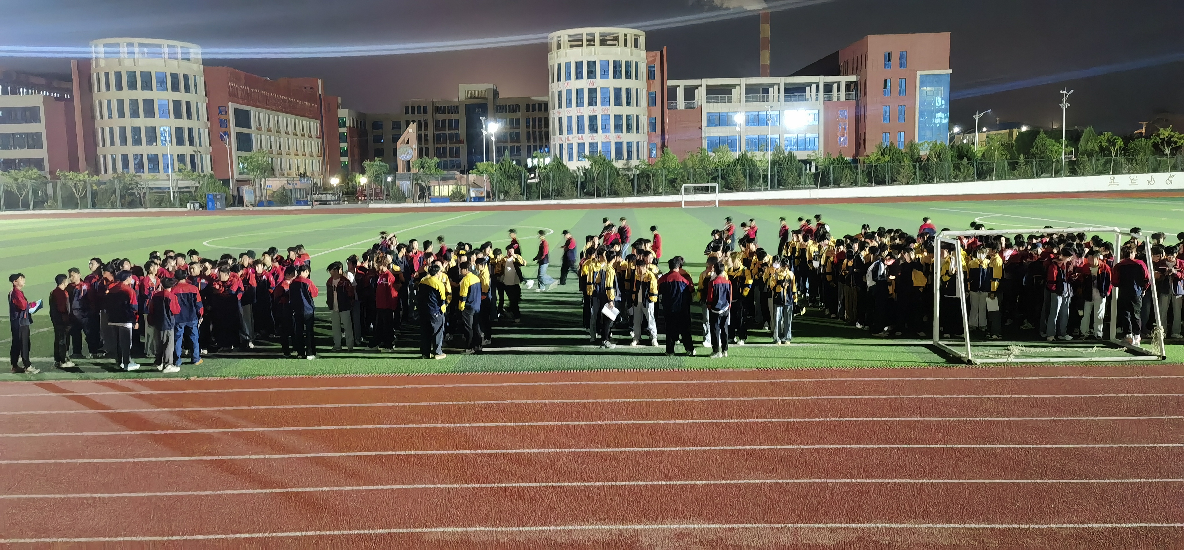 21时30分,格物楼消防警报响起,参演师生迅速进入应急状态,在安全员“保持间距、有序撤离”的指令下,规范采用低姿捂鼻等方式沿预定路线撤离,全员用时3分50秒从格物楼安全转移至悦健体育场集结地。