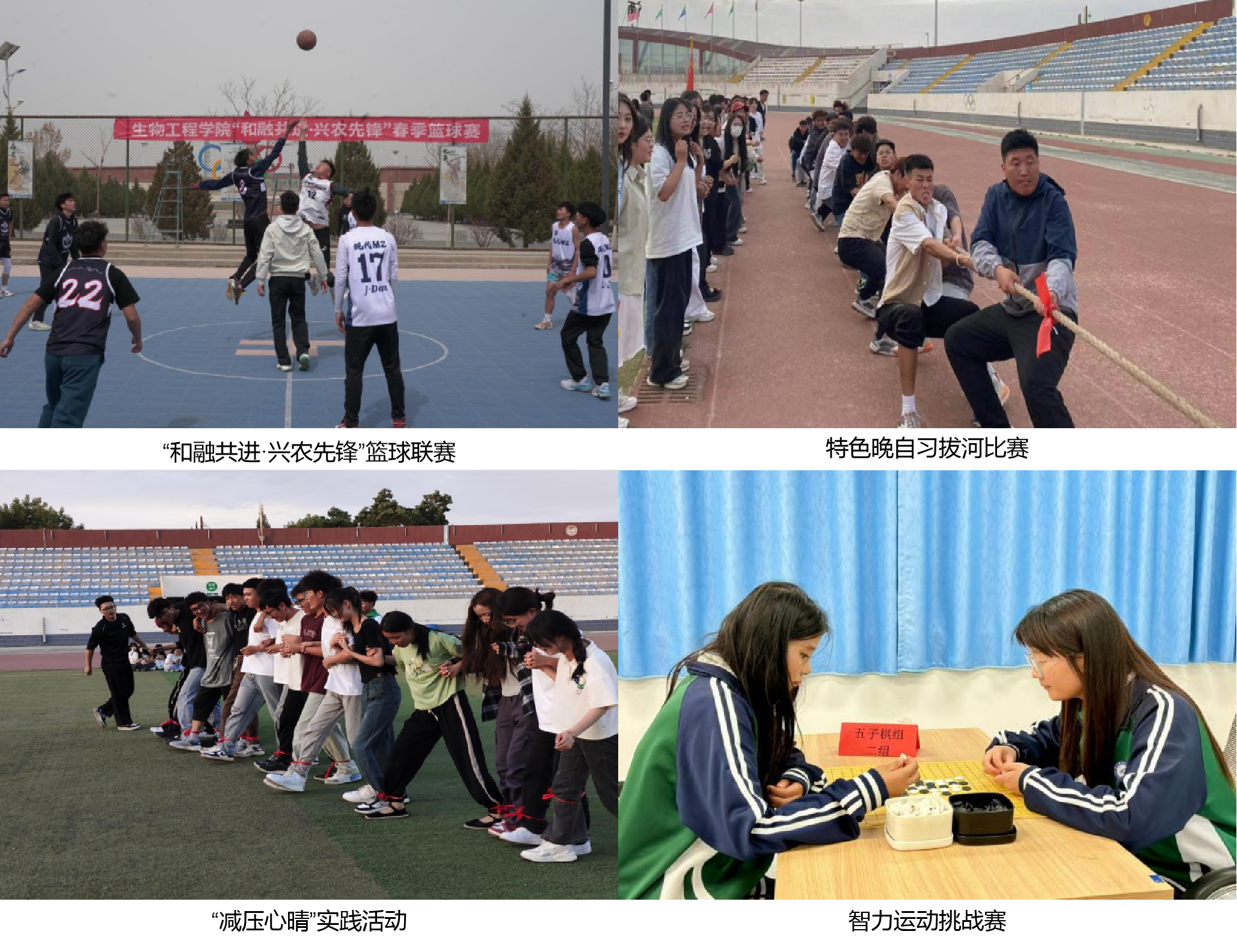 学院通过积极组织学生开展篮球联赛、拔河比赛、智力运动挑战赛等体育赛事、“减压心晴”、“爱的微笑·班级表情包”制作等心理健康实践活动,通过寓教于乐的形式提高大学生的心理健康水平。