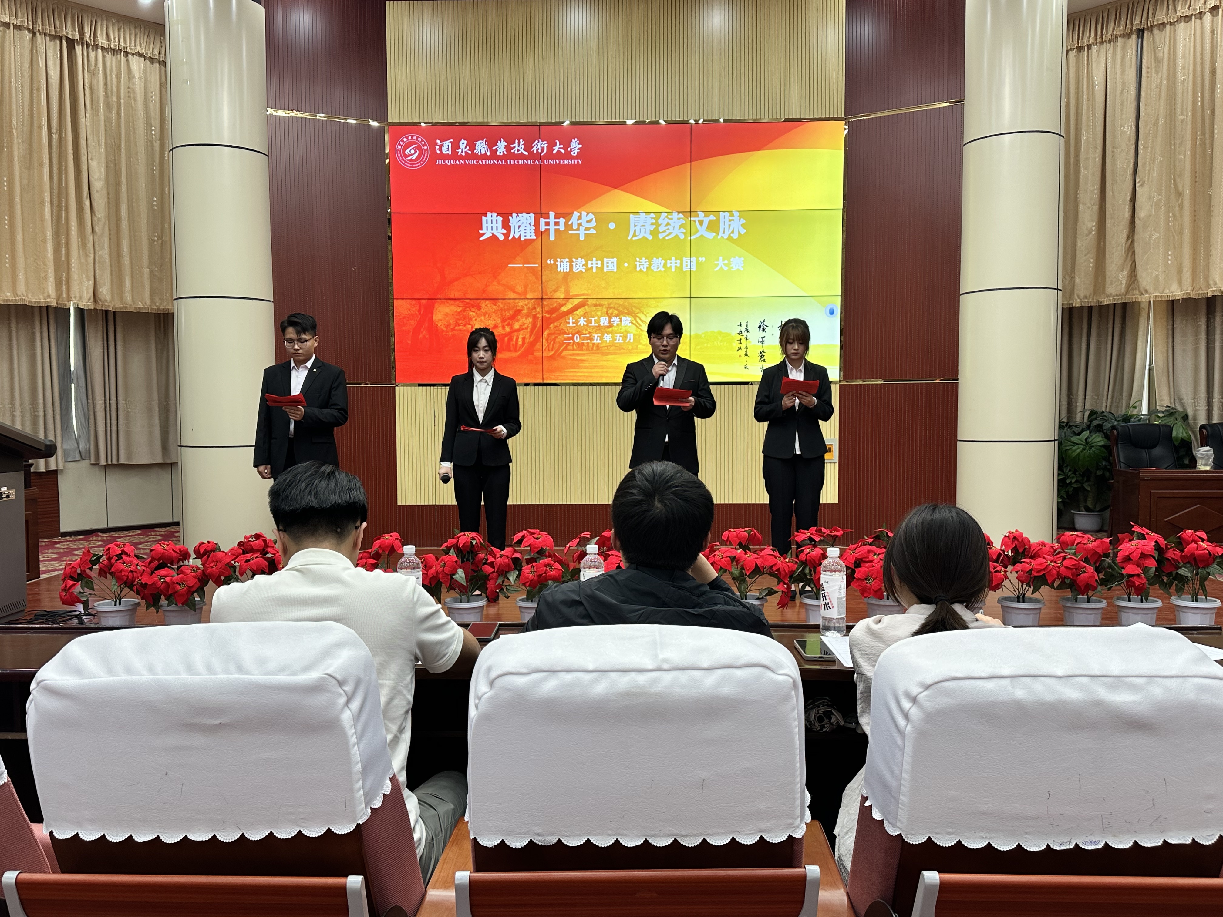 为弘扬中华优秀传统文化,传承民族精神,土木工程学院于5月27日举办了“典耀中华 赓续文脉”诵读比赛,比赛涵盖“诵读经典”和“诗教中国”两个方面。