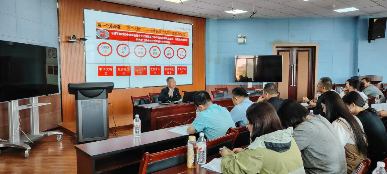 易志军教授紧扣时代背景 解析理论根基,结合“世界百年未有之大变局”与“中华民族伟大复兴战略全局”,从时代逻辑、历史逻辑、实践逻辑三个维度,系统阐释习近平新时代中国特色社会主义思想的创立背景。易志军教授指出,全体参训干部要以习近平新时代中国特色社会主义思想和党的二十届三中全会精神为指导,坚持不懈用习近平新时代中国特色社会主义思想凝心铸魂,更加深刻领悟“两个确立”的决定性意义,增强“四个意识”、坚定“四个自信”、做到“两个维护”。