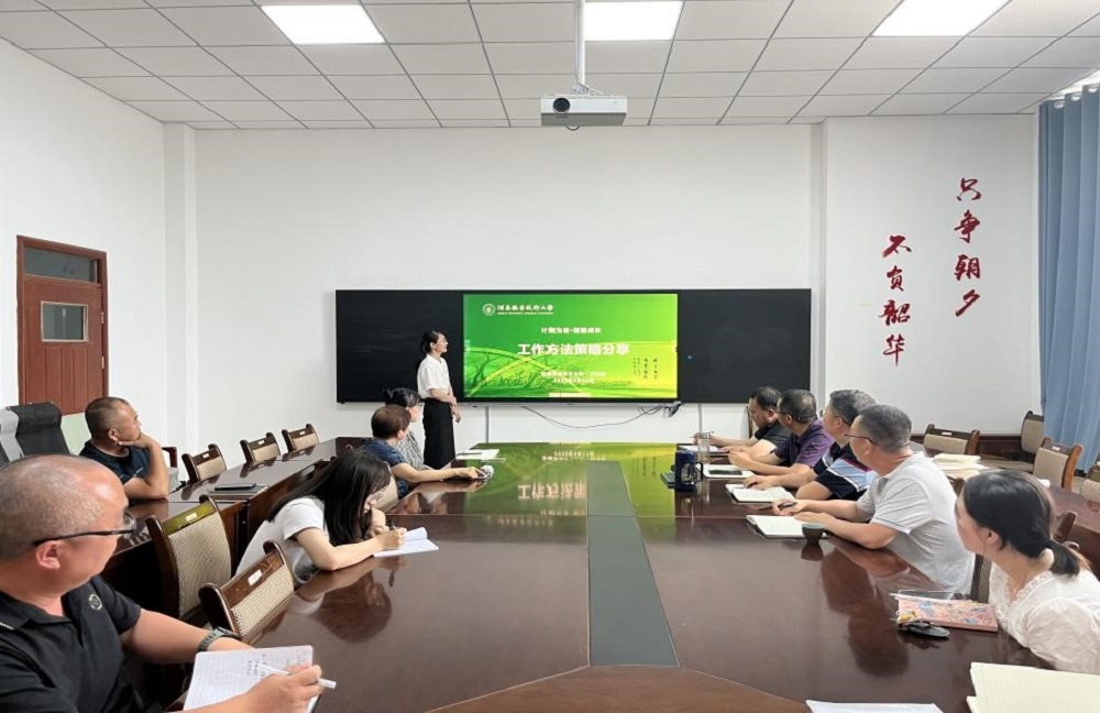 院系动态 > 正文为深化教材建设,赋能高质量教学,推动教学改革走深走实,促进教师经验交流与资源共享。6月17日下午,旅游与烹饪学院在行知楼710会议室成功举办教材建设成果展示与科研能力提升交流活动。本次活动以“深化教材建设,赋能高质量教学”为主题,展示了部分教材建设成果,共同探索职业本科教材建设与人才培养新路径。学院全体教师积极参与,现场气氛热烈。