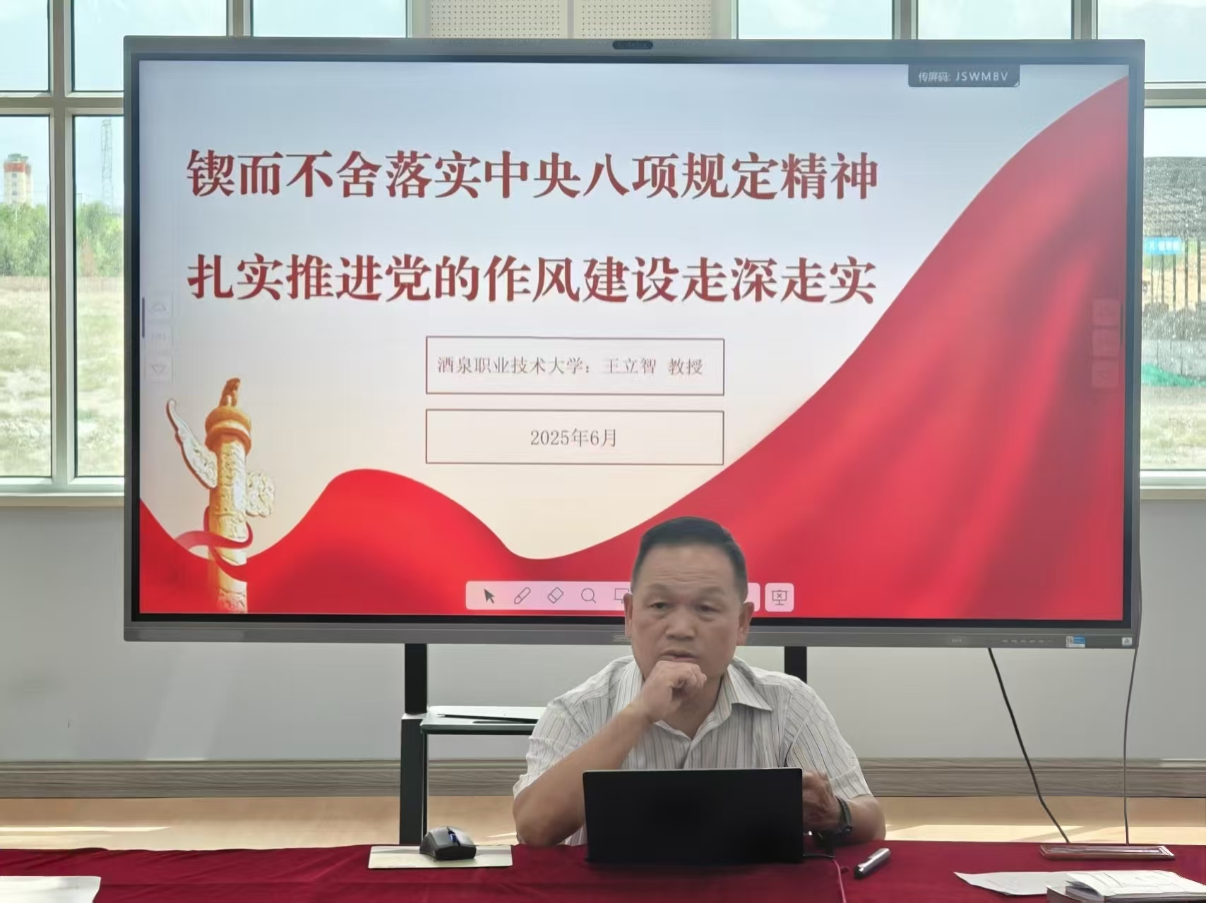 2025年6月17日,体育与健康学院在天健馆二楼会议室召开专题党课,学校党委副书记王立智教授以“锲而不舍落实中央八项规定,扎实推进党的作风建设走深走实”为主题,为全体师生党员讲授了一堂思想深刻、案例鲜活的党课。此次党课旨在巩固深化党纪学习教育成果,进一步强化党员纪律意识,为学院落实立德树人根本任务及长远发展提供作风保障。