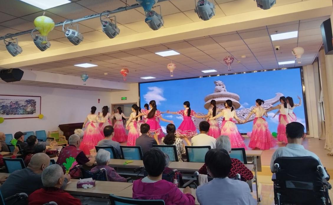 志愿者精心编排六大民族特色舞蹈,通过舞蹈活跃气氛,传递美好祝福。表演间隙,志愿者与老人结对谈心,笑声充盈活动现场。