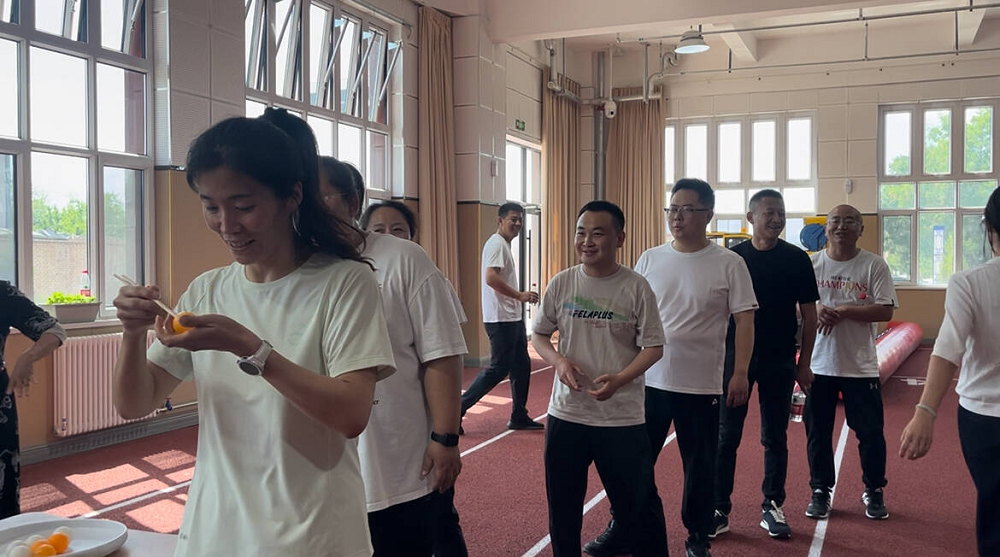 在篮球比赛中,双方队员默契配合,攻防转换迅速,展现了高超的球技;排球赛场上,队员们沉着应战,每一次扣杀和拦网都引来阵阵喝彩;趣味项目“螃蟹接力”和“两人三足”则考验了队员们的协调性与团队合作能力,现场欢声笑语不断。此外,“八字跳绳”“筷子夹乒乓球”和“猛龙过江”等新颖项目进一步点燃了现场氛围,参赛选手们全情投入,观众掌声雷动。