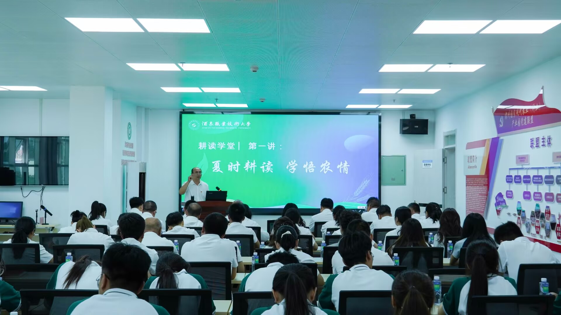 成立仪式上,双方领导共同为耕读学堂揭牌,随后,杨洁围绕产教融合从“强化学风突出‘实’”“强化作风突出‘硬’”“强化规矩突出‘严’”等三方面进行讲授,深入剖析当前农业产业发展趋势,强调耕读学堂是深化校企合作、实现协同育人的重要载体。