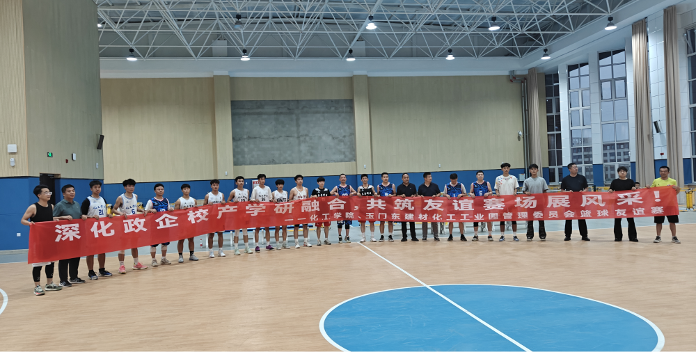 参观结束后,一场激烈而友好的篮球联谊赛在学校篮球馆拉开帷幕。化工学院代表队与玉门东建材化工园区管委会及企业联合代表队展开了精彩对决。赛场上,队员们斗志昂扬、配合默契,精准的投篮、巧妙的传球、严密的防守,不时引来场边观众的阵阵喝彩。这场篮球联谊赛不仅丰富了大家的文体生活,更搭建了一个轻松愉快的交流平台,让校政企三方人员在挥洒汗水的同时,增进了友谊、拉近了距离。