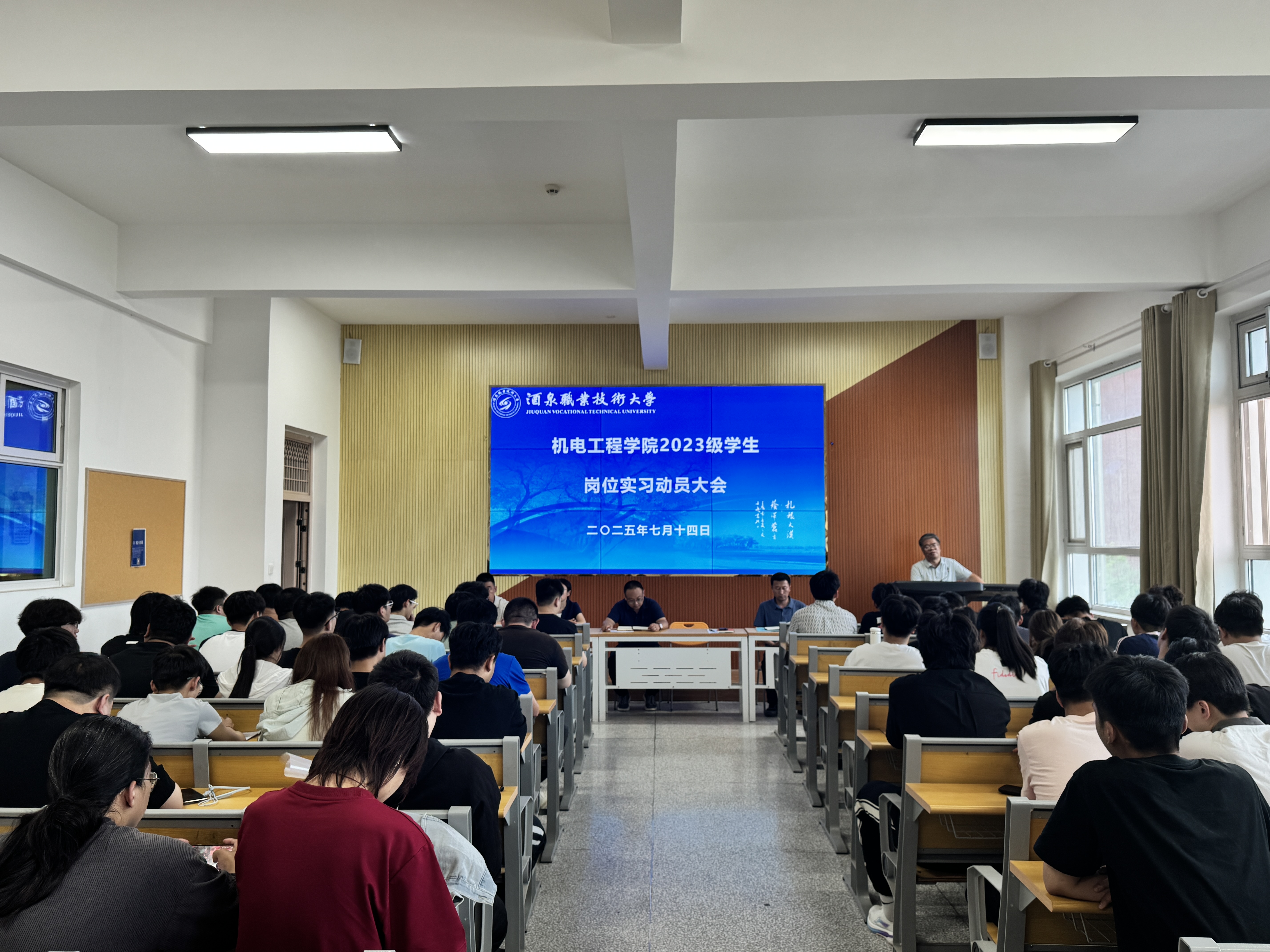 院系动态 > 正文为加强学生实习安全,确保2023级学生岗位实习有序开展,7月14日,机电工程学院分场次召开2025年学生岗位实习安全动员大会。学院党支部副书记李建春、副院长赵吉虎、副院长刘明及相关专业班主任及509名实习学生参会。