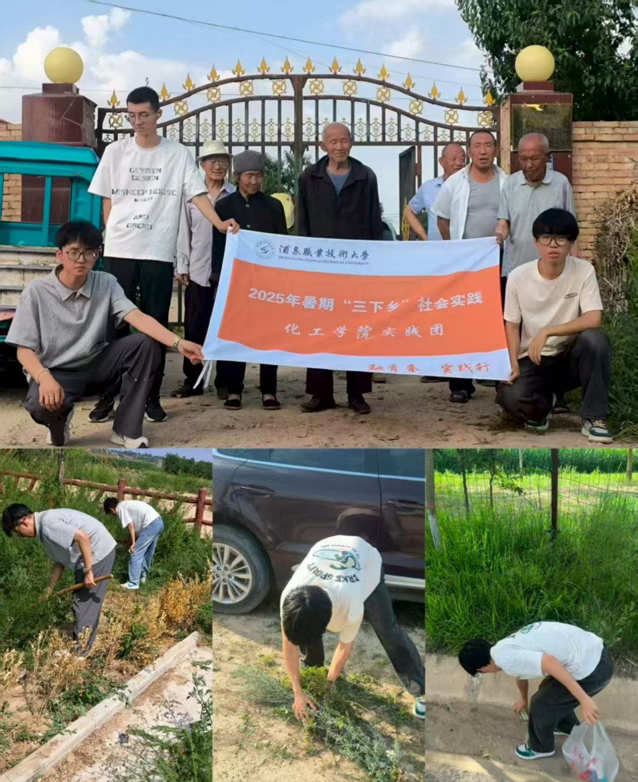 院系动态 > 正文为积极响应国家乡村振兴战略号召,深入践行暑期“三下乡”社会实践精神,化工学院“时代铁人”志愿服务团队于2025年8月7日至11日,奔赴甘肃省庆阳市镇原县、宁县,开展了以环境整治、关爱帮扶与科普宣教为主题的系列志愿服务活动,以青春之志、专业之能,为当地乡村发展注入蓬勃活力。