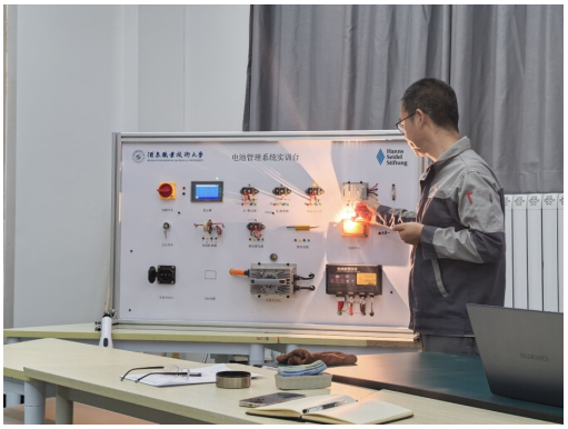 培训第二阶段,全体参训学员以新能源汽车高压互锁故障检修和新能源汽车无法充电故障检修为工作任务,制作新能源汽车电池管理实训台和新能源汽车高压互锁实训台,教师故障诊断技能大幅提升。