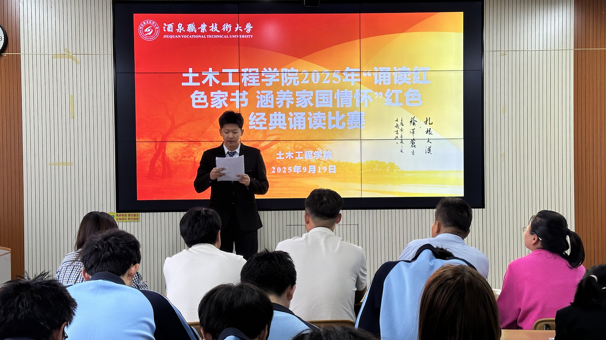 为深切缅怀革命先烈,传承红色基因,赓续精神血脉,9月22日,土木工程学院成功举办了以“诵读红色家书 涵养家国情怀”为主题的红色经典朗诵活动。活动吸引了2024级各班的积极参与,经班级初选推荐,共有7支队伍13名同学参加院级朗诵,各班学生代表到场观摩学习。