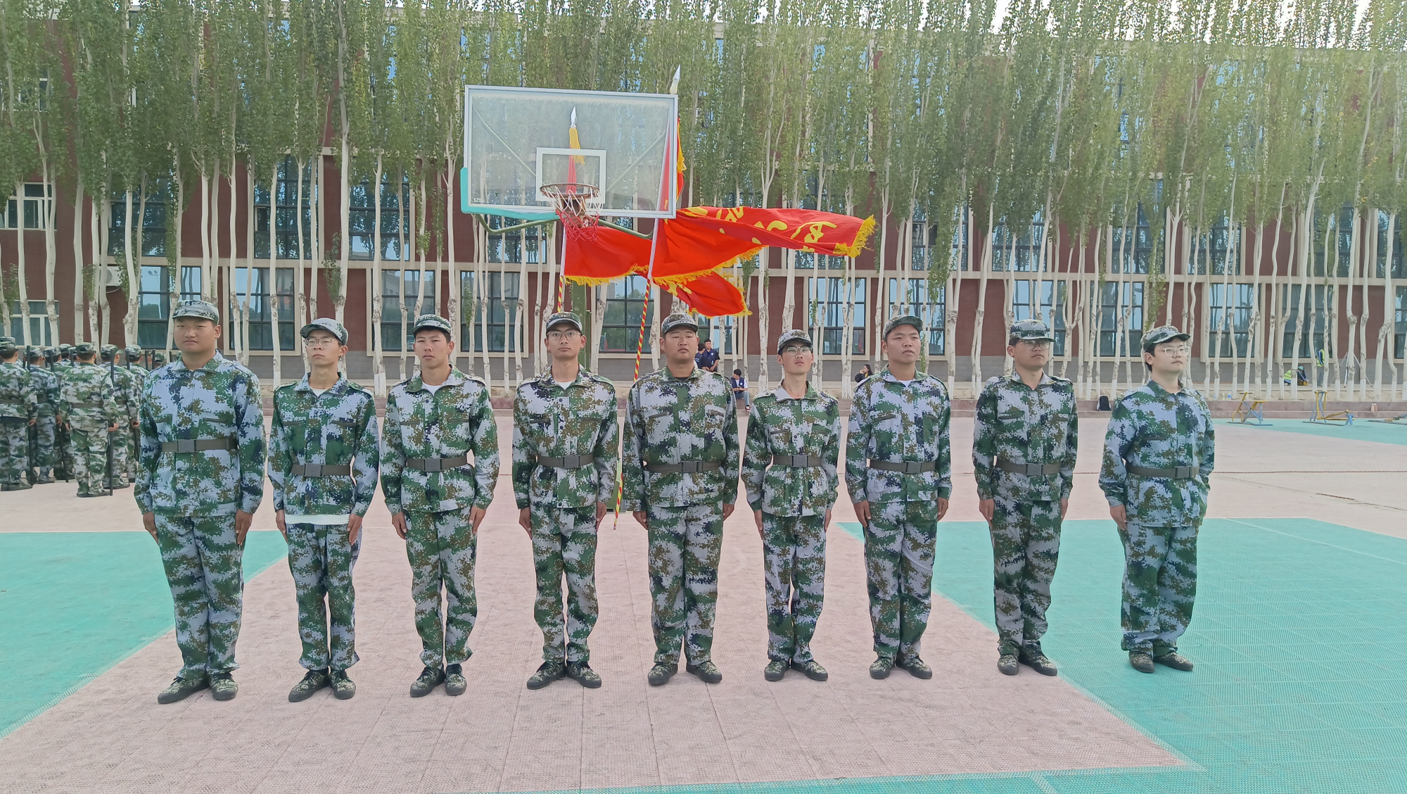 从晨曦到日暮,汗水浸透了衣衫,阳光晒黑了皮肤,但没有人轻言放弃。学子们在各方助力下,用挺拔如松的军姿、响彻云霄的口号、坚定有力的步伐,完美诠释了“流血流汗不流泪,掉皮掉肉不掉队”的军训精神。汇演场上,他们目光坚定、动作划一、气势如虹,每一个细节都力求完美,最终用实力和汗水征服了所有评委。