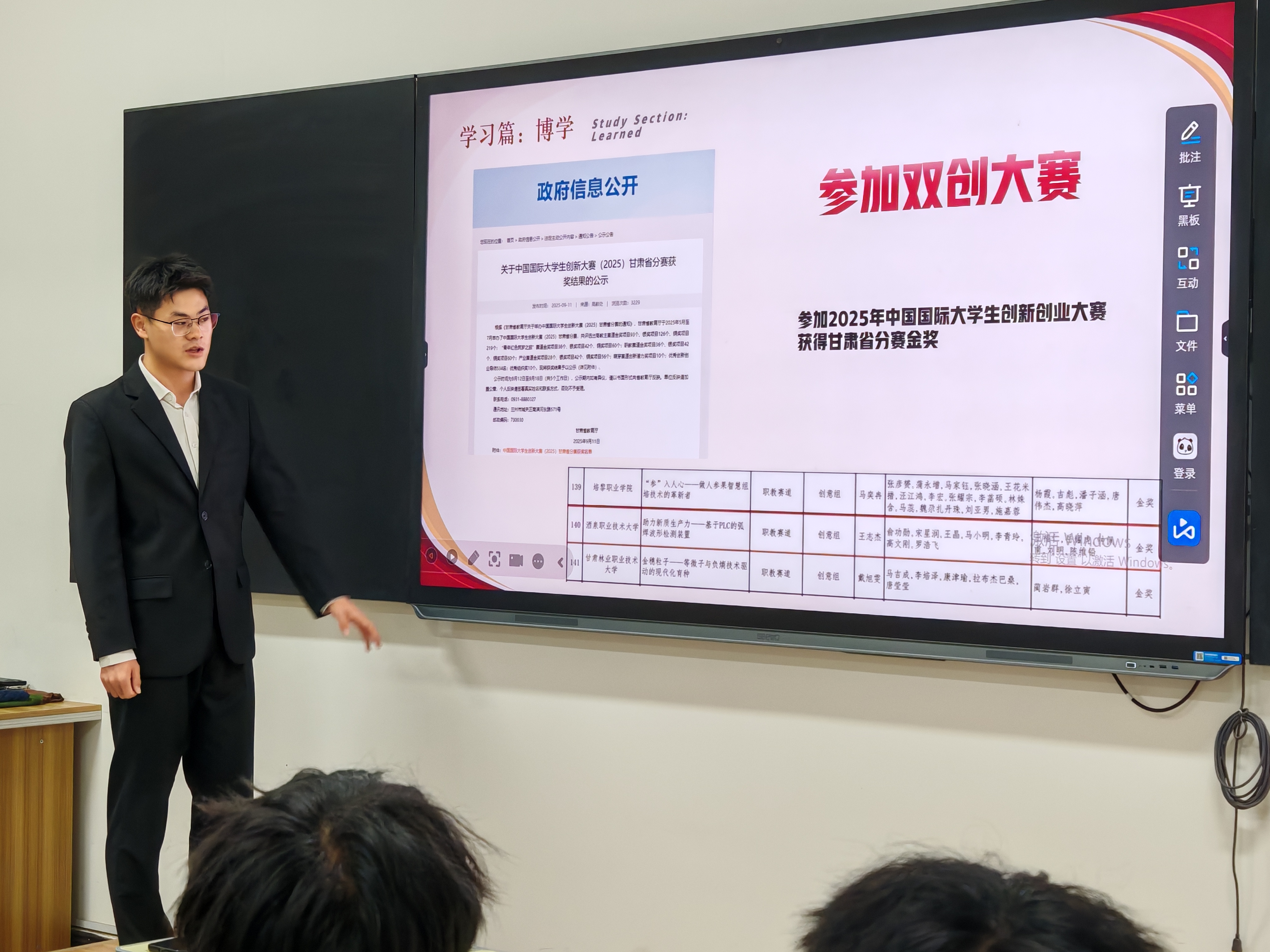 技能大赛是锤炼专业本领、提升实践能力的重要平台。在技能分享环节,获得2025年中国国际大学生创新创业大赛甘肃省分赛金奖的罗浩飞和获得甘肃省职业院校技能大赛汽车营销赛银奖的赵爱平,从团队组建、选题立意,到技术攻关、作品打磨,再到现场展示与答辩,用真实的案例向同学们展示了将理论知识转化为实践成果的完整路径。他们鼓励同学们勇敢走出舒适区,从校级赛事入手,积累参赛经验,在实践中提升动手能力与问题解决能力,极大地激发了同学们参与竞赛的兴趣与热情。