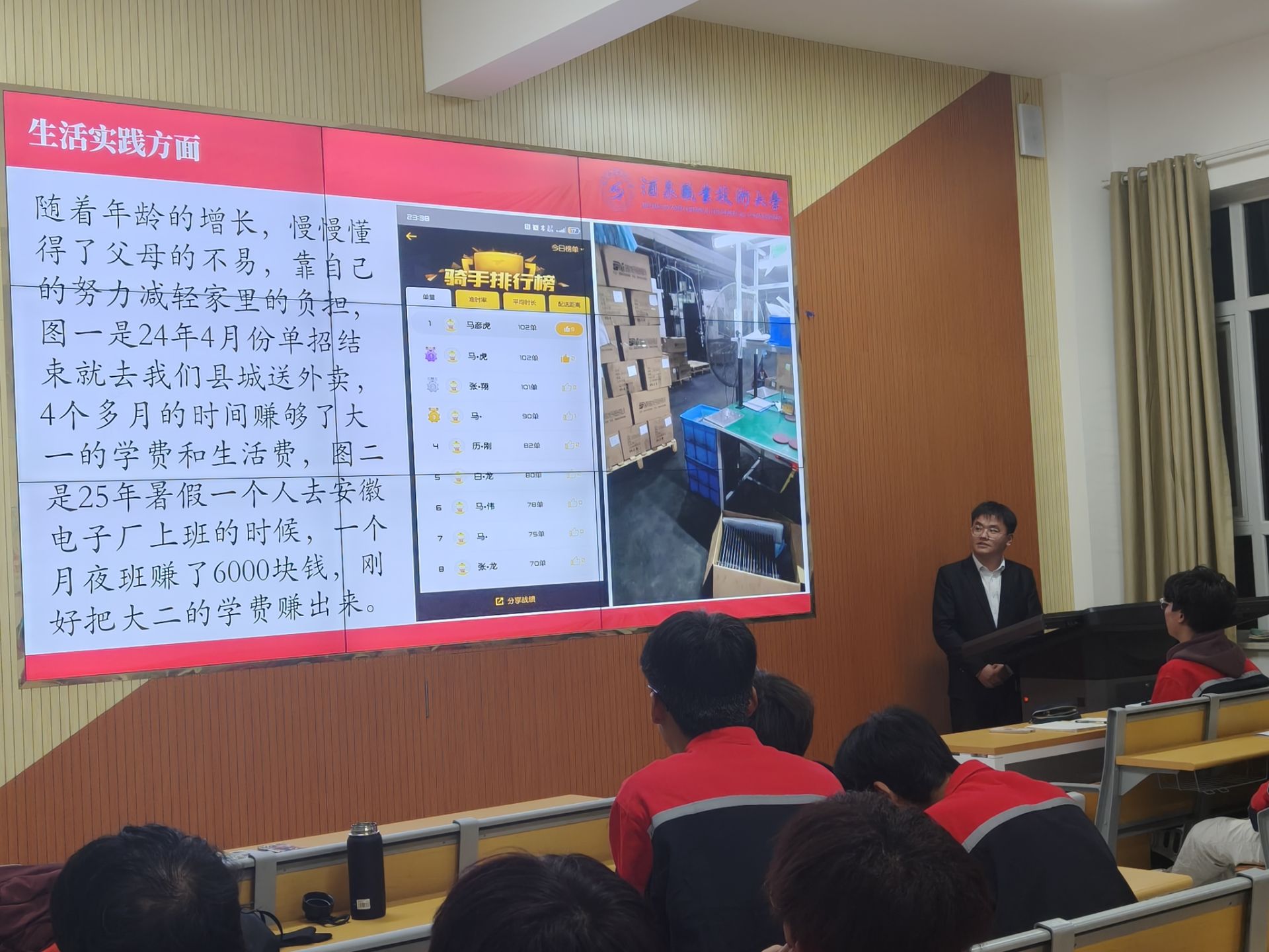 院系动态 > 正文为充分发挥优秀学子的榜样示范作用,引领学生明确学业方向,科学规划大学生活,11月5日-6日,机电工程学院组织获得国家奖学金的六名优秀学子,在2025 级各班开展 “优秀学子经验分享”宣讲会。来自2024级的六名优秀学子结合自身成长经历,围绕学习经验、技能竞赛、实践成长三大核心板块,用真实案例与实用技巧,为同学们送上了一场干货满满的成长分享盛宴。
