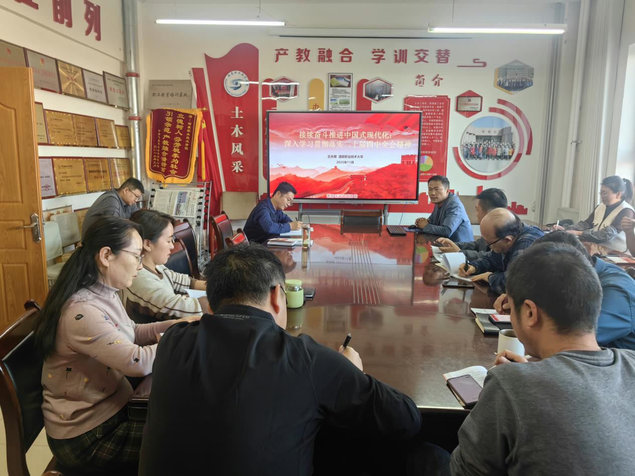 院系动态 > 正文为深入学习贯彻党的二十届四中全会精神,引导全体党员教师深刻把握习近平新时代中国特色社会主义思想的核心要义,准确理解党中央最新战略部署,牢固树立正确党史观,11月13日下午,土木工程学院特邀马克思主义学院三位老师开展联合专题理论宣讲。学院全体党员教师参加本次学习。