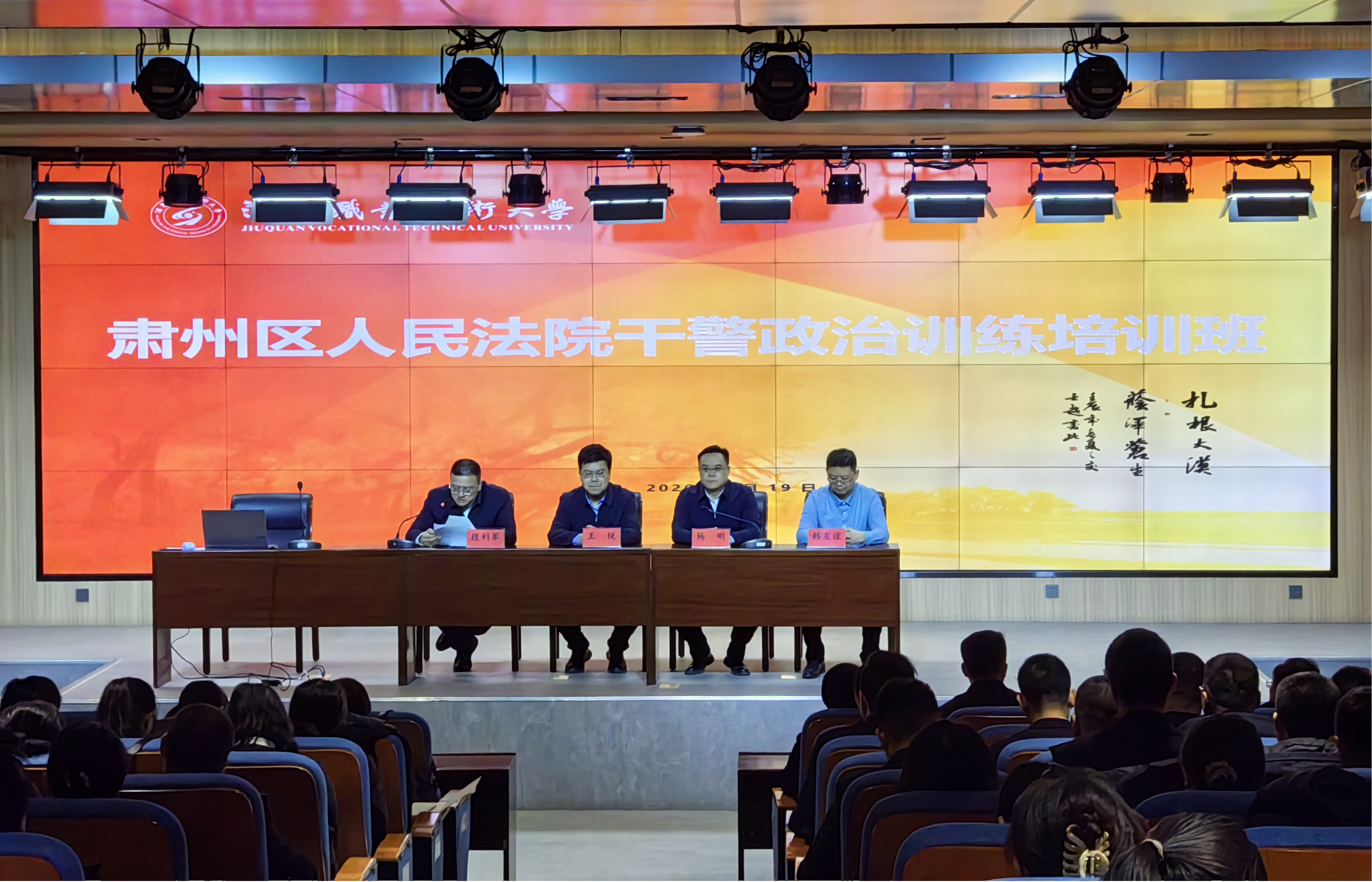 院系动态 > 正文寒冬腊月砺初心,笃学实干启新程。1月19日酒泉市肃州区人民法院干警政治训练培训班在我校正式开班。此次培训旨在进一步强化干警政治素养、筑牢法治信仰、提升履职能力,为维护社会公平正义、护航肃州区高质量发展提供坚实司法保障。肃州区人民法院院长段利军,酒泉职业技术大学党委委员、副校长杨明等领导出席开班仪式,北京大成律师事务所高级合伙人韩友谊、省委党校教授王锐等授课专家及法院全体干警参加活动,开班仪式由肃州区人民法院院长段利军主持。本次培训由机电工程学院承办。