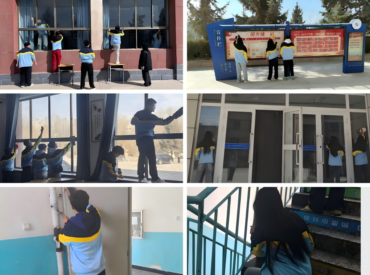 全体团学干部充分发挥模范带头作用,对教学楼、学生公寓公共区域等重点部位进行卫生清扫。大家分工明确、细致入微,从公示栏的胶带印记到教室门窗的顽固污渍,从楼梯扶手的擦拭到地面顽固积垢的清理,同学们在劳动中体悟“劳动光荣、技能宝贵、创造伟大”的时代风尚,在汗水中涵养爱校荣校情怀,以实际行动维护文明校园环境,助力文明校园建设再上新台阶。