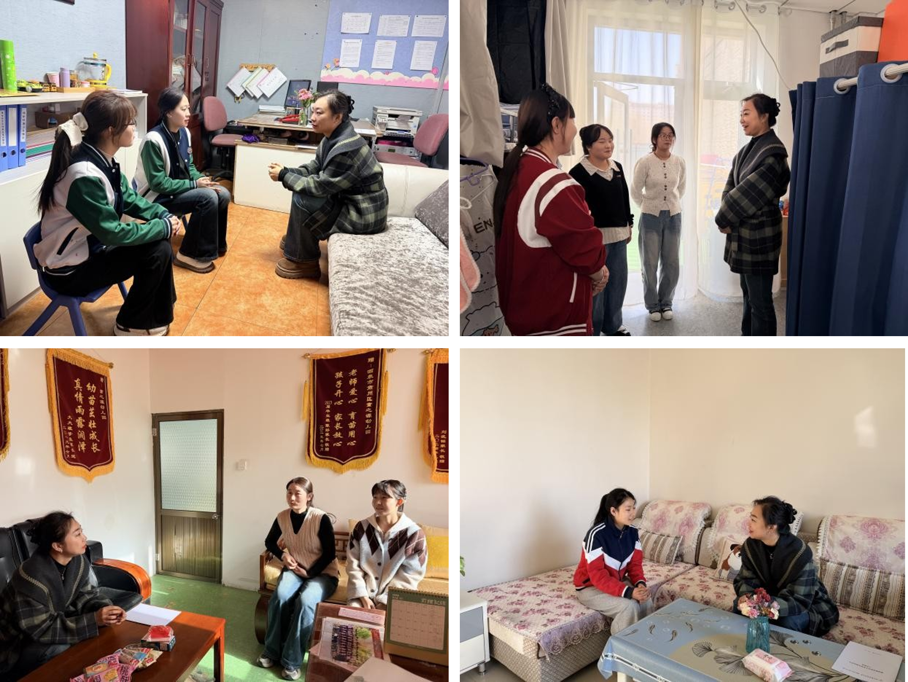 通过与学生面对面沟通交流,深入了解同学们的工作开展情况、日常生活保障及未来职业发展规划,结合学前教育行业发展趋势与岗位履职核心要求,勉励大家珍惜宝贵的实践锻炼机会,锚定专业成长目标,持续夯实专业功底、锤炼技能,在实践中积累教学经验、磨砺责任担当、精进综合本领,为未来投身学前教育事业、助力区域幼教高质量发展筑牢根基。