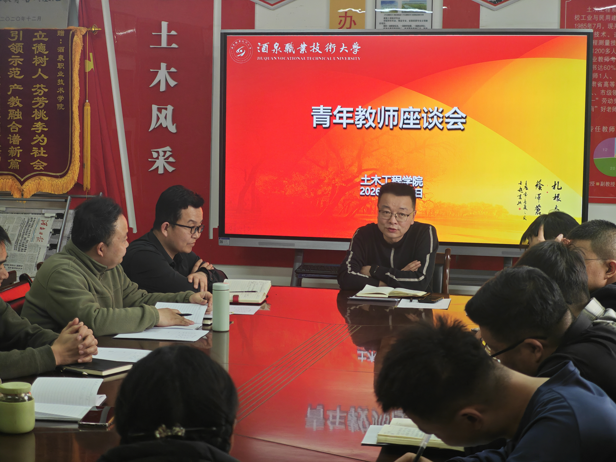 为深入落实立德树人根本任务,加强青年教师队伍建设,助力青年教师成长成才,土木工程学院于2026年3月19日召开青年教师座谈会。学院党支部书记、院长田政锋主持会议,学院全体干事、近三年新入职教师、工贸调入教师及青年教师指导教师参加会议。