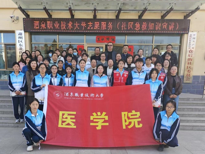 为弘扬新时代雷锋精神,践行医学生服务人民、奉献社会的责任担当,3月24日,医学院12名学生志愿者在3名教师带领下,走进酒泉市肃州区西北街社区,开展急救知识普及宣传活动,向社区居民系统讲解海姆立克急救法与心肺复苏术操作要点。