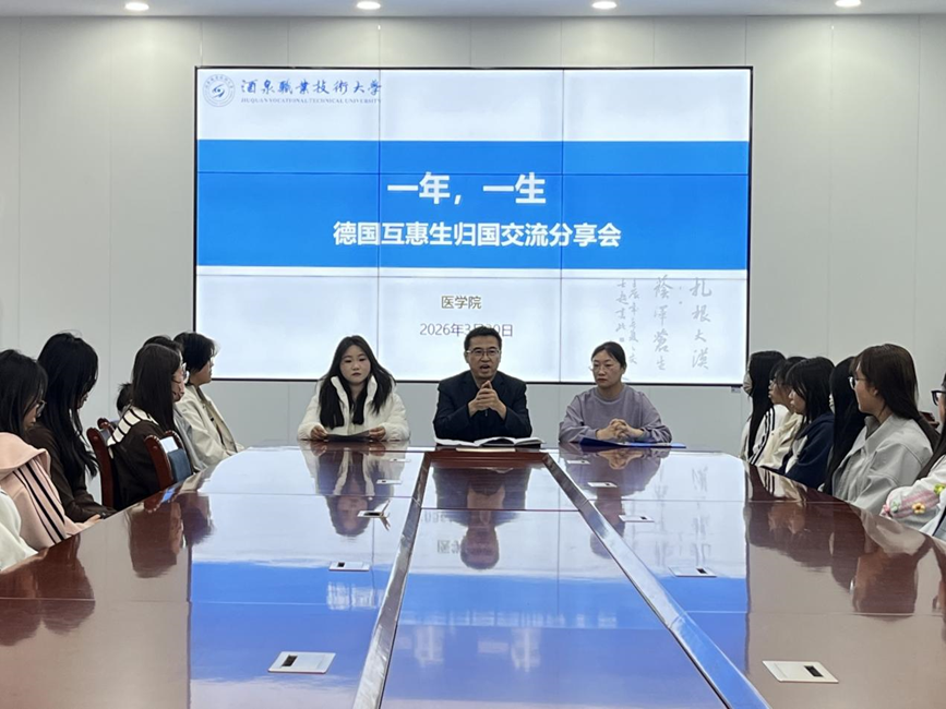 2026年3月30日晚,医学院在学院内举办“一年,一生”德国互惠生归国交流分享会。本次活动旨在分享归国学生在德国的学习与生活经历,帮助在校生了解互惠生项目,提升跨文化沟通能力与职业规划意识。医学院党支部书记、院长范玉敏出席活动,2022级互惠生项目归国学生顾紫涵担任分享嘉宾,2024级、2025级涉外护理班全体学生参加。