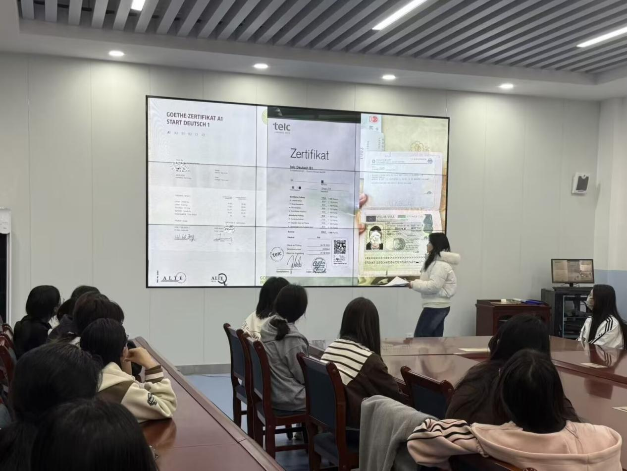 随后的互动交流中,2024级、2025级涉外护理班学生围绕德语学习方法、歌德等级考试备考、出国申请流程、在德生活注意事项、项目补助标准及归国后发展等问题踊跃提问。顾紫涵结合自身经验逐一解答,现场气氛热烈,交流深入。