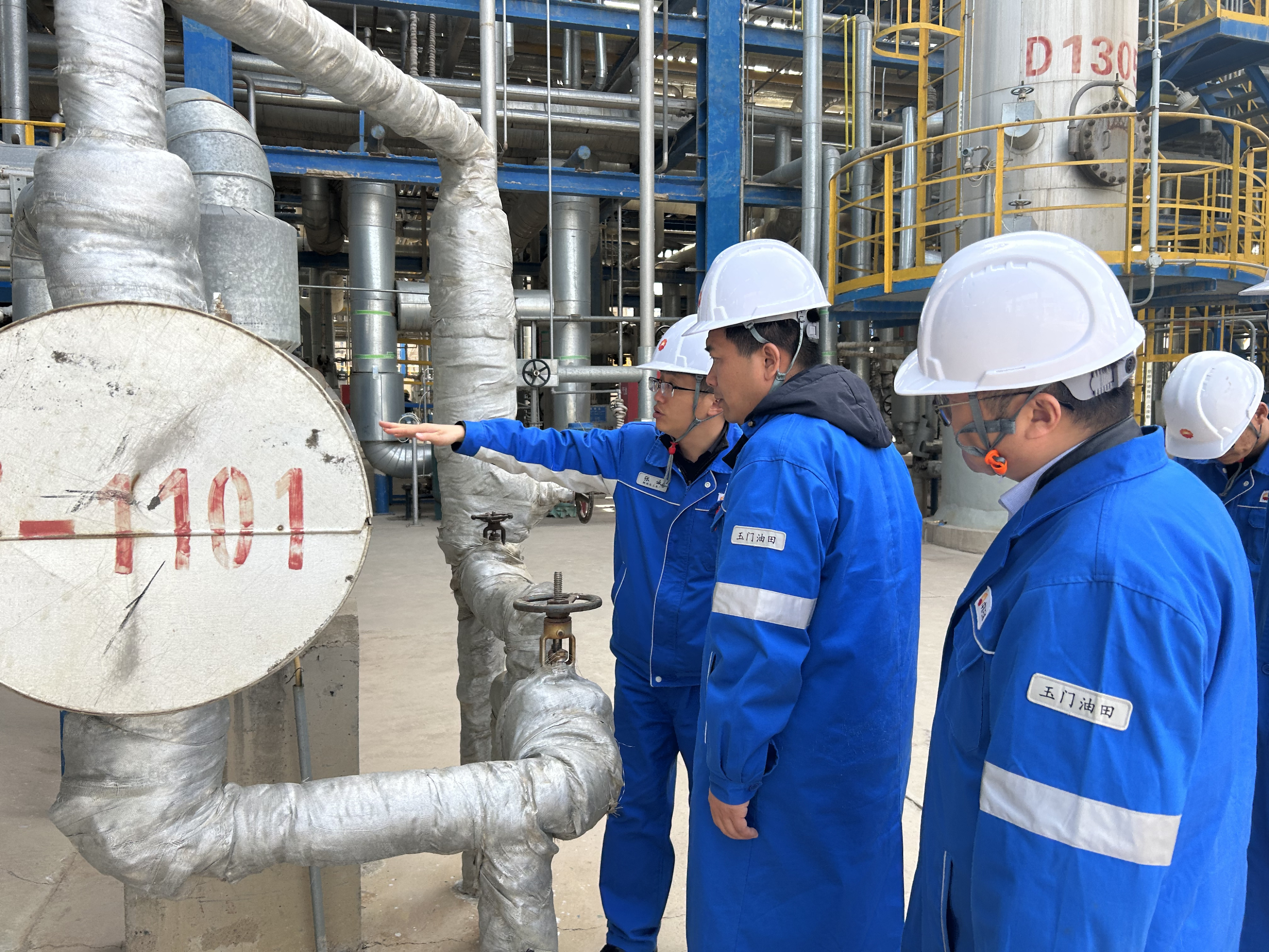 调研期间,研究院团队在企业技术专家的陪同下,深入玉门油田公司炼油化工总厂生产厂区,实地考察了处于运行状态下的换热车间。针对玉门油田老君庙采油厂近年来在注水系统及油气集输过程中面临的设备服役寿命缩短、检修成本增高等问题,教师们详细记录了各类管件在高温、高压及高盐环境下的具体腐蚀形貌与失效特征,并与一线技术人员就腐蚀引起的阀门漏液、密封老化及焊缝失效等问题进行深入交流。