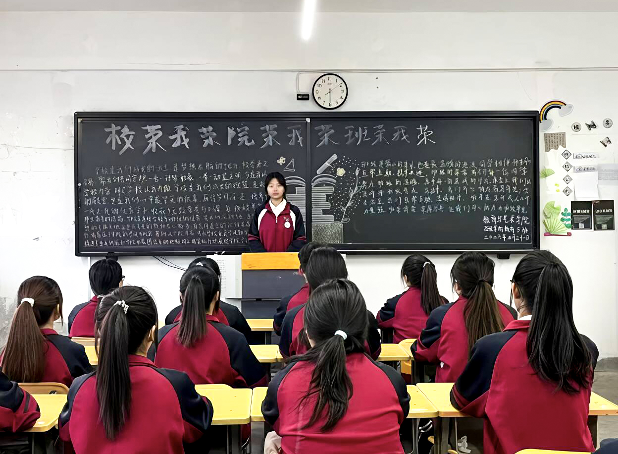 本次“校荣我荣·院荣我荣·班荣我荣”主题班会,是学院落实立德树人根本任务、深化新时代大学生集体主义教育、强化学生思想价值引领的重要举措。进一步夯实了教育与艺术学院广大学子的归属感、责任感与使命感。学院将以本次主题教育为新起点,切实把爱校荣院的情怀转化为踔厉奋发的内生动力,以实干实绩为学校发展添砖加瓦,引领学子在服务集体、践行使命中实现个人成长成才与人生价值的全面提升。