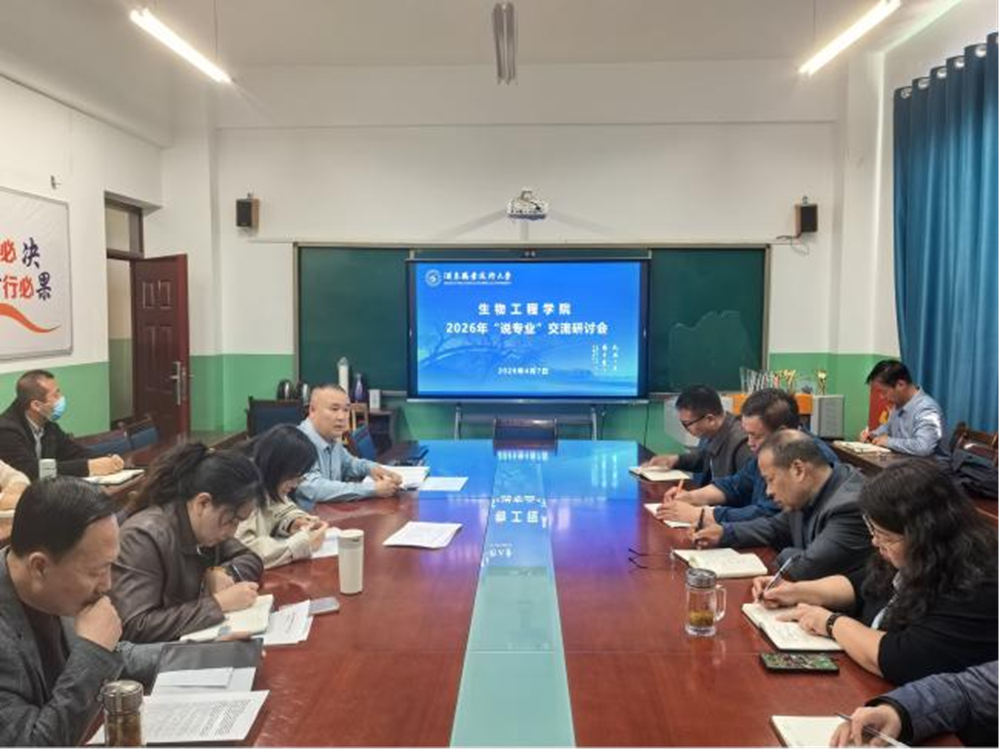 院系动态 > 正文为深入贯彻落实酒泉职业技术大学深化产教融合、聚力“五金”建设、推动教学关键要素改革实施方案精神,全面推进学院专业提质培优、内涵发展,4月7日下午,生物工程学院 在逸夫楼315会议室成功举办2026年“说专业”交流研讨活动。学院全体教师参会,副院长王洪亮主持会议。