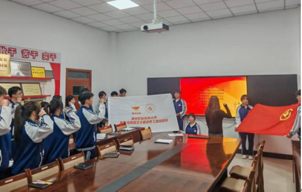 发言结束后,学院团委书记带领全体青马学员重温入团誓词。面对鲜红的团旗,全体学员高举右拳,庄严宣誓,铿锵有力的誓言回荡在会场,既凝聚了青年学子的初心使命,更彰显了大家践行青马精神、勇担时代责任的坚定决心。