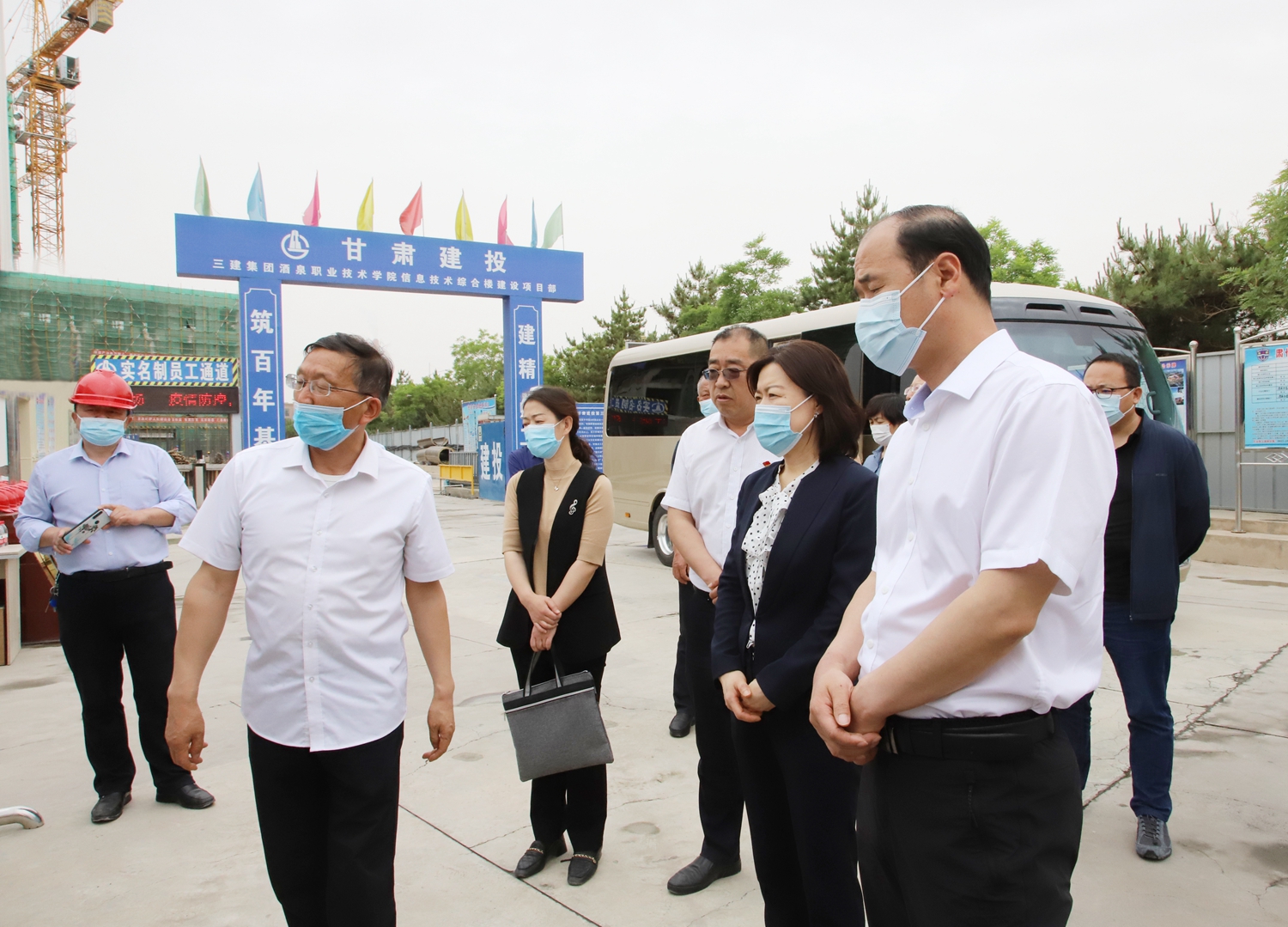 焦旭红一行在学校党委书记、校长易志军,党委副书记许军的陪同下深入信息综合楼在建项目施工现场,实地查看了主体工程和建设进度,在逸夫报告厅查看了酒泉考区指挥中心及考场环境。