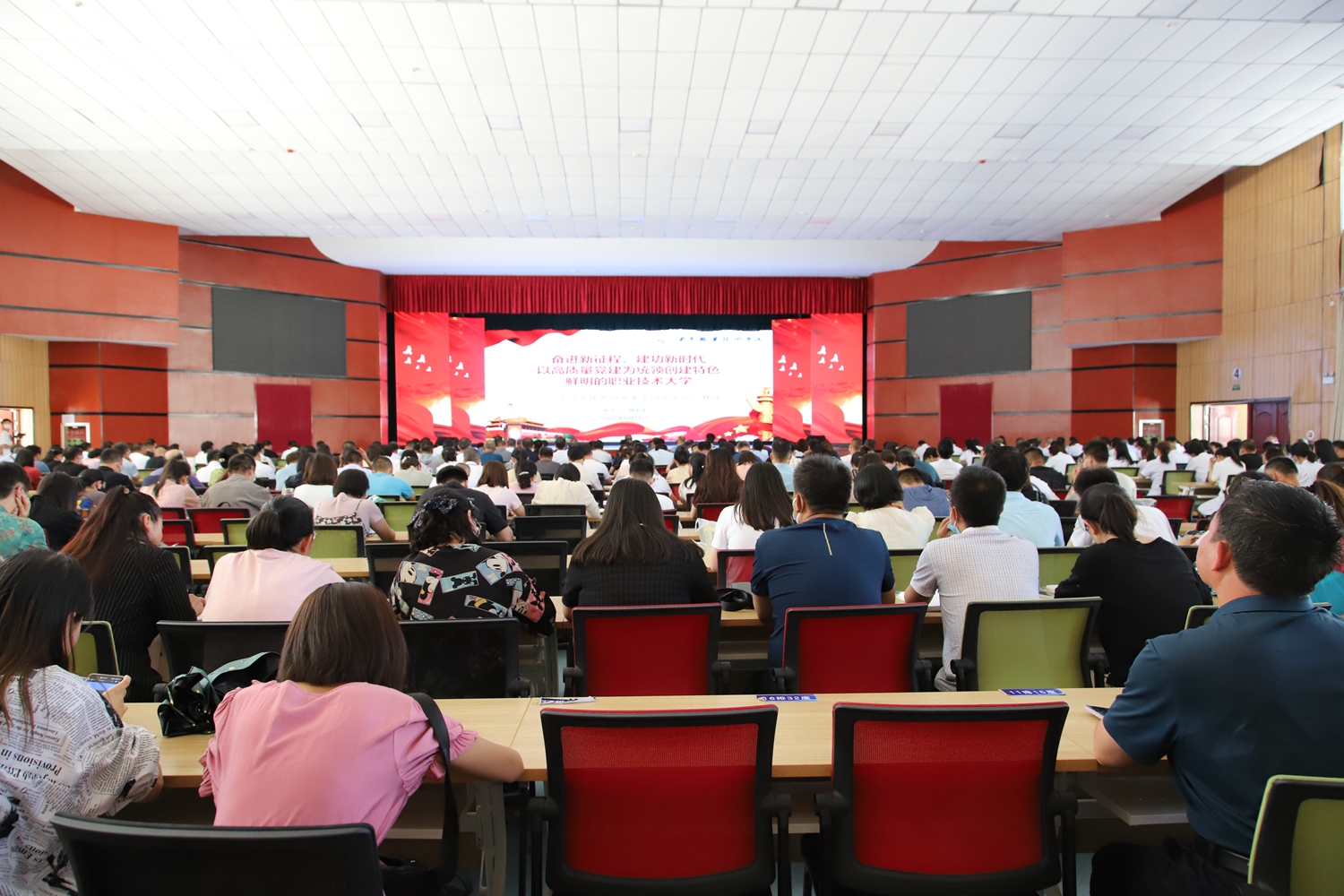 学校党委班子成员、全体中层干部及教师代表;酒泉卫校党委班子成员、全体中层干部及教师代表;工贸中专班子成员、教师代表及附属幼儿园班子成员等450余人聆听了报告。