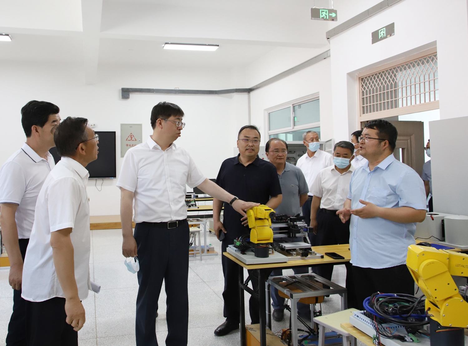 6月15日,市委书记王立奇、市委常委、市委秘书长张毅,市委常委、常务副市长张鸿,市委常委、肃州区委书记何正军及市政府秘书长贾泰斌等相关领导来我校调研产教融合示范区建设情况。