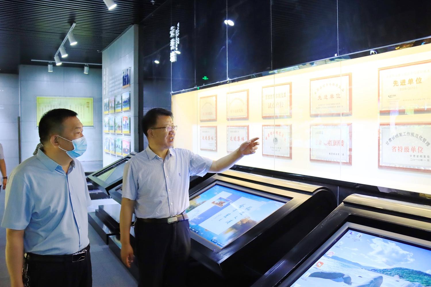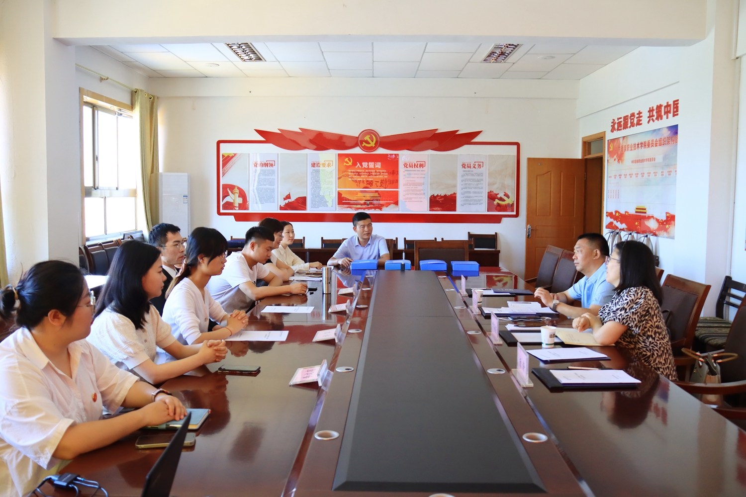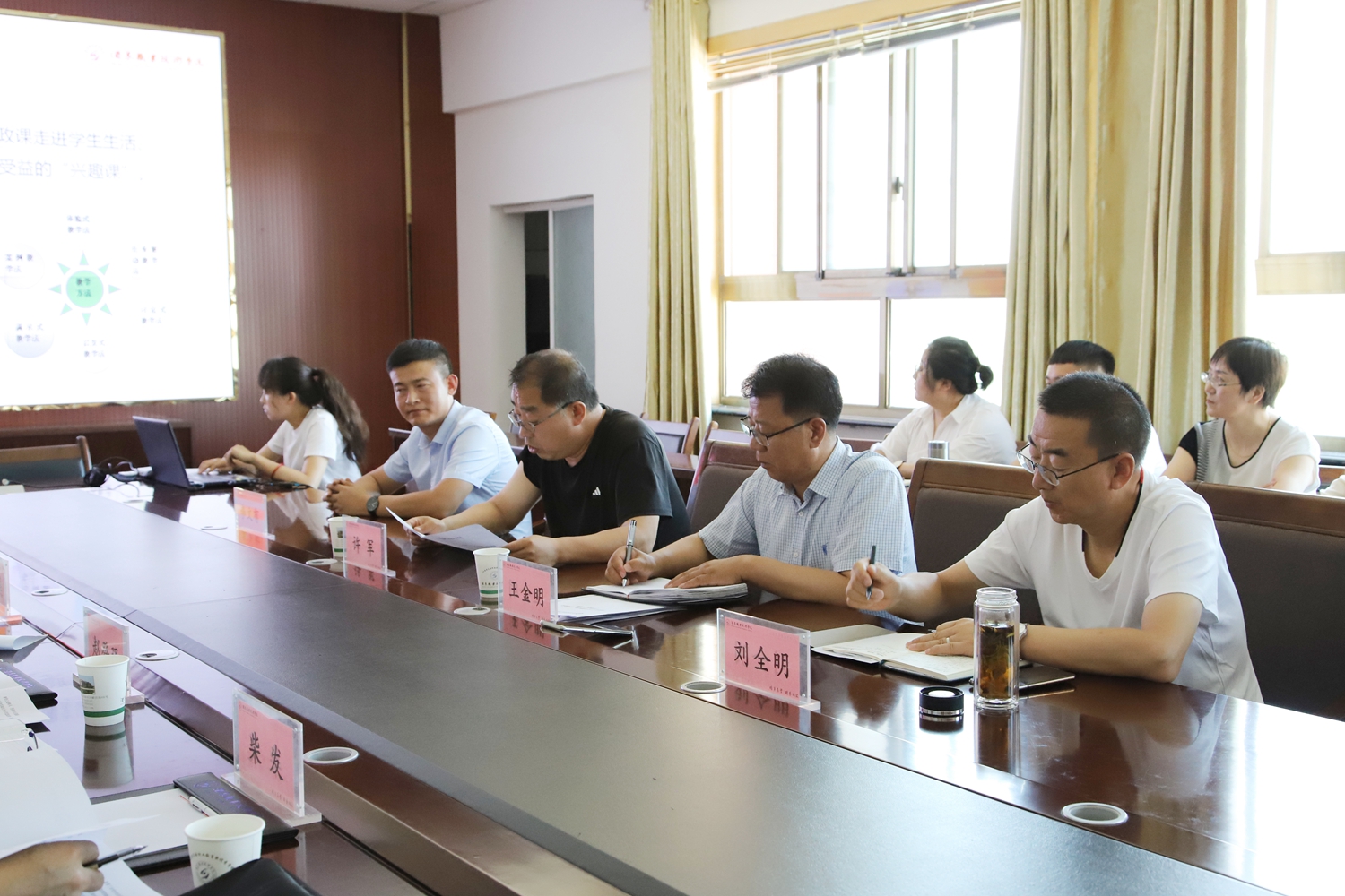 6月23日,酒泉市大中小学思政课一体化建设调研组来校调研了解学校思政课一体化建设成效及存在的问题。党委副书记许军、党委委员、宣传统战部部长王金明陪同调研。