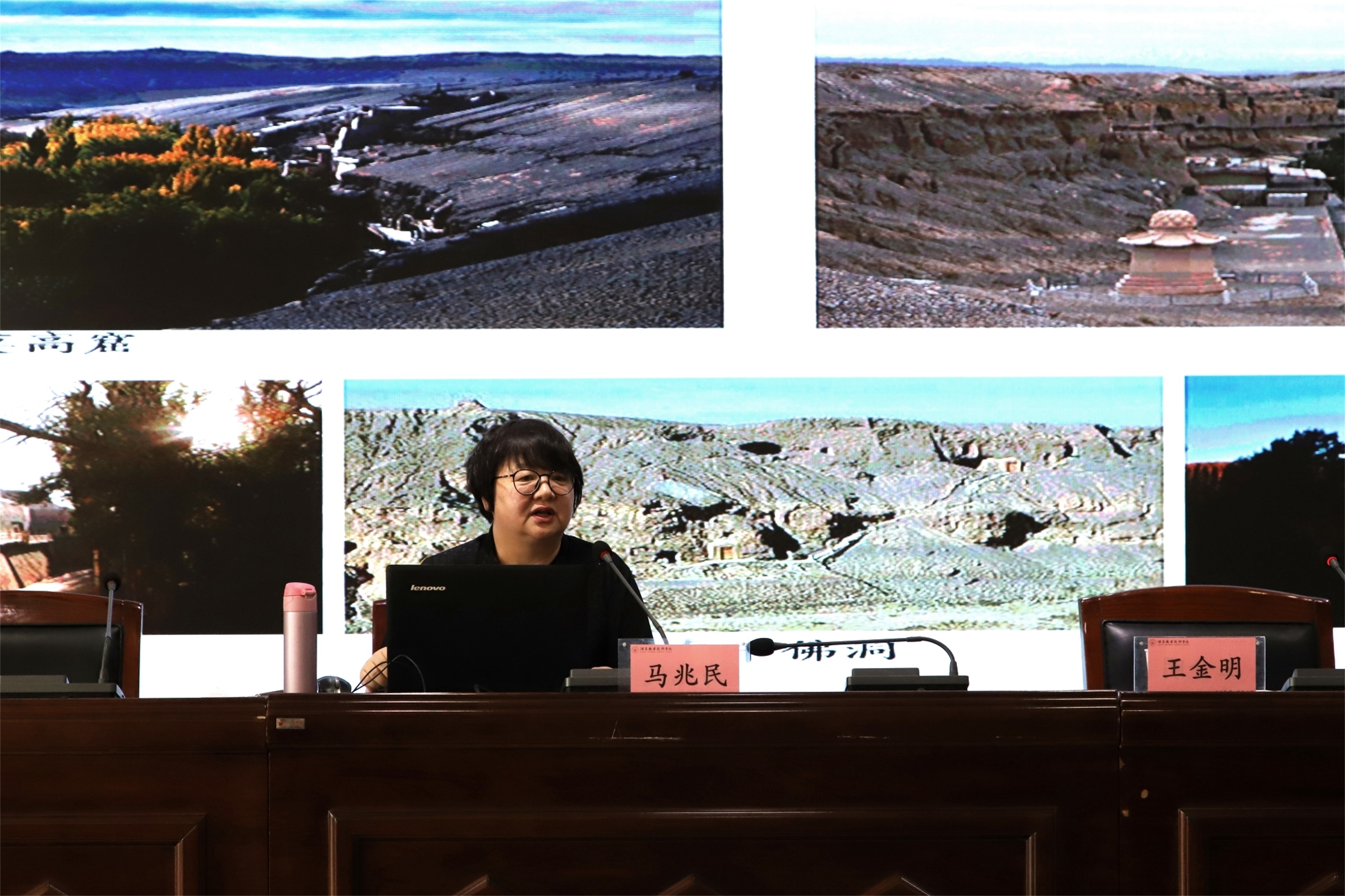 为传播中华优秀传统文化和甘肃特色文化,全面贯彻落实习近平总书记视察甘肃重要讲话精神,讲好甘肃故事,传播甘肃声音,创新学校思想政治教育机制,推进校园文化建设,推进党史学习教育常态长效开展,引导师生增强民族文化自信,按省委宣传部、省委教育工委统一部署,在敦煌研究院的大力支持下,6月27日下午,学校邀请敦煌研究院考古研究所副研究员、中国敦煌吐鲁番学会会员马兆民为学校师生作《讲好敦煌故事 传承莫高精神》为主题的专题讲座。讲座由学校党委委员、宣传统战部部长王金明主持,学校师生代表近300人现场聆听了讲座。