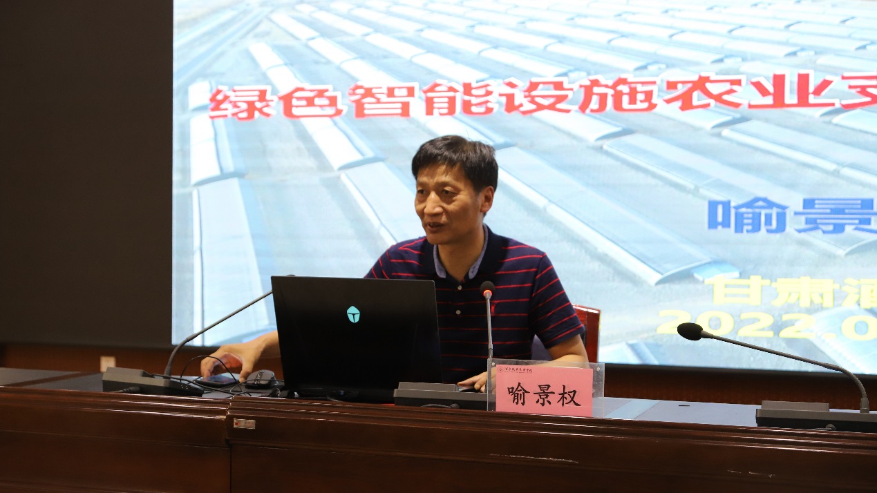 随后,喻景权院士在学校图书馆为生物工程学院全体专业师生作了“绿色智能设施农业支撑区域健康发展”的主旨学术报告。喻景权院士从政策引领、乡村振兴和共同富裕等各个层面,阐述健康绿色食物理念发展设施农业的必要性,针对国内发展设施蔬菜和绿色生产存在的问题进行分析研判,结合酒泉开展实施的绿色智能生产技术—自控式无土栽培体系,进行了详细的讲解和推介。