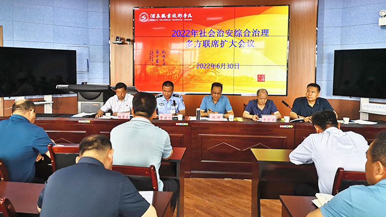 为进一步规范健全校园及周边综合治理工作体系,推进平安校园建设,筑牢校园安全防线,6月30日下午,学校邀请国家安全局、火车站派出所、解放路社区综治办联合召开社会治安综合治理多方联席扩大会议。学校党委委员、纪委书记、监察专员魏韡出席,学工部、应急安稳处、后勤处、团委等部门负责人,各二级学院院长、副院长及各楼宇、公寓管理人员共计70余人参加。会议由应急安稳处处长王瑜珲主持。